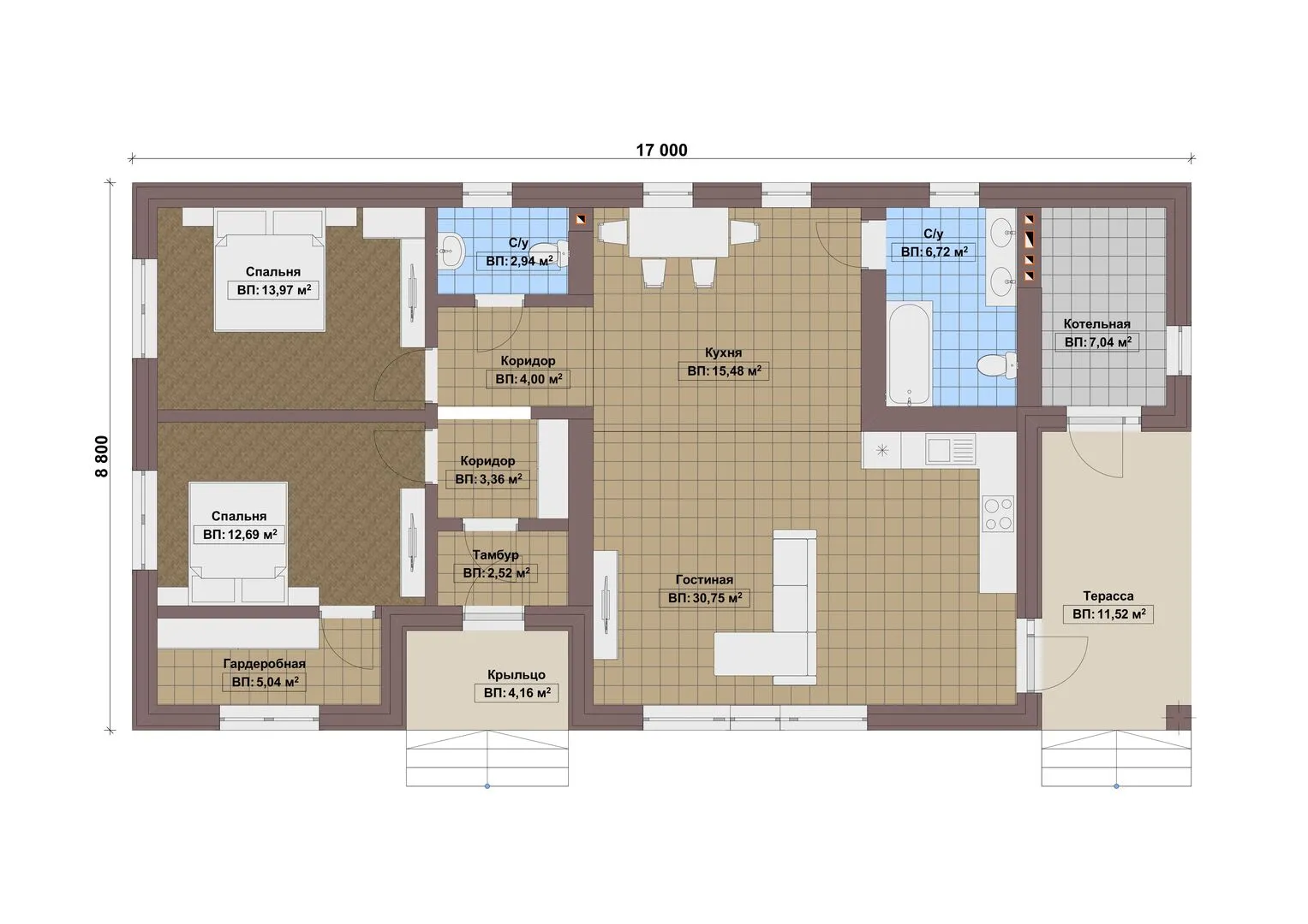 Одноэтажный дом Fixplans — 0989