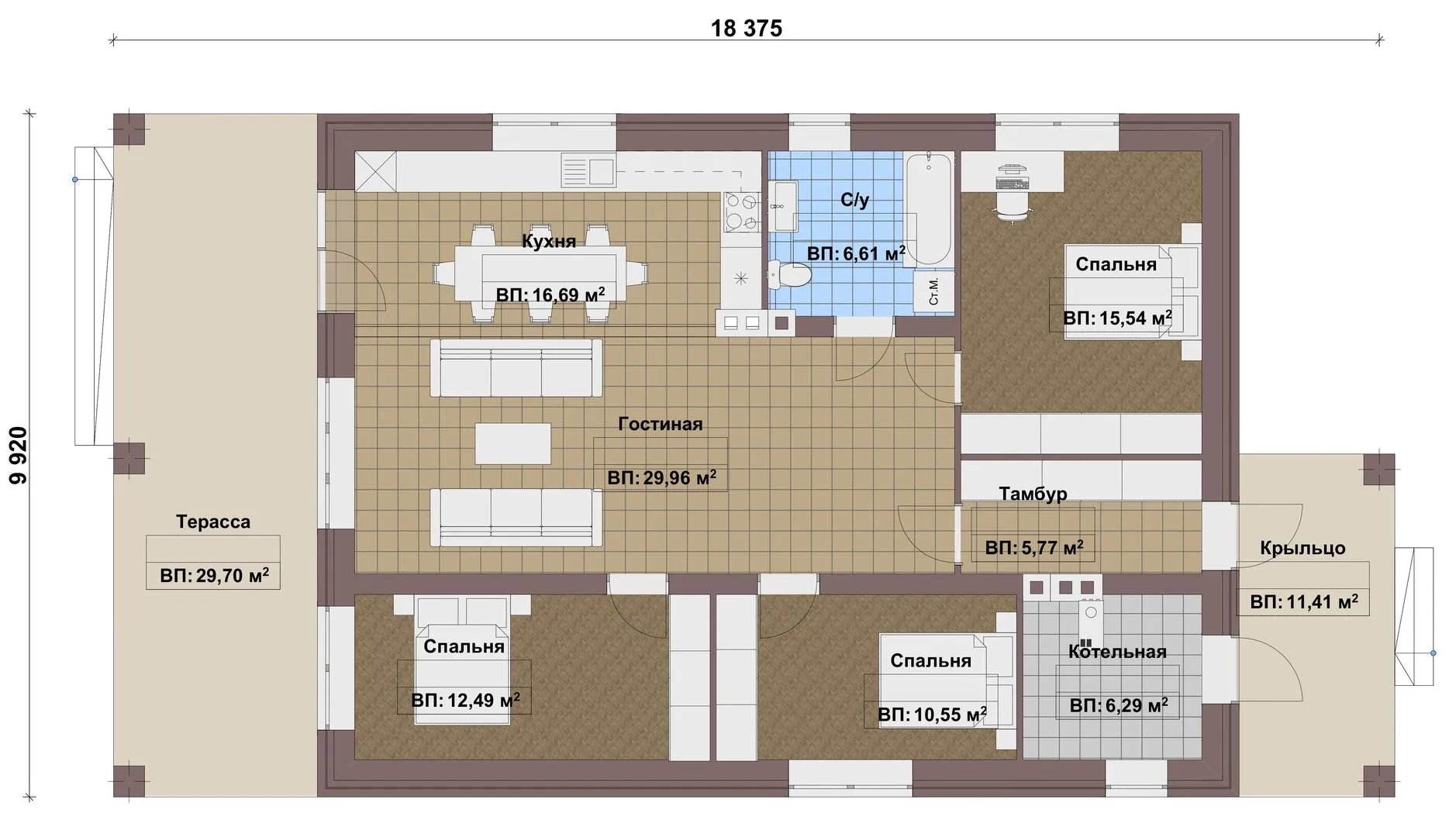 Заказать конусльтацию по:Одноэтажный дом FIXPLANS — 1655