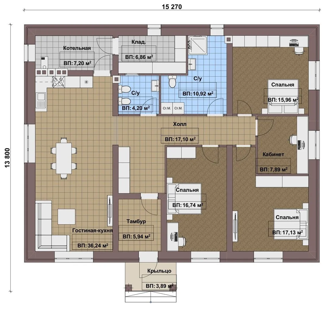 Заказать конусльтацию по:Одноэтажный дом FIXPLANS — 1664