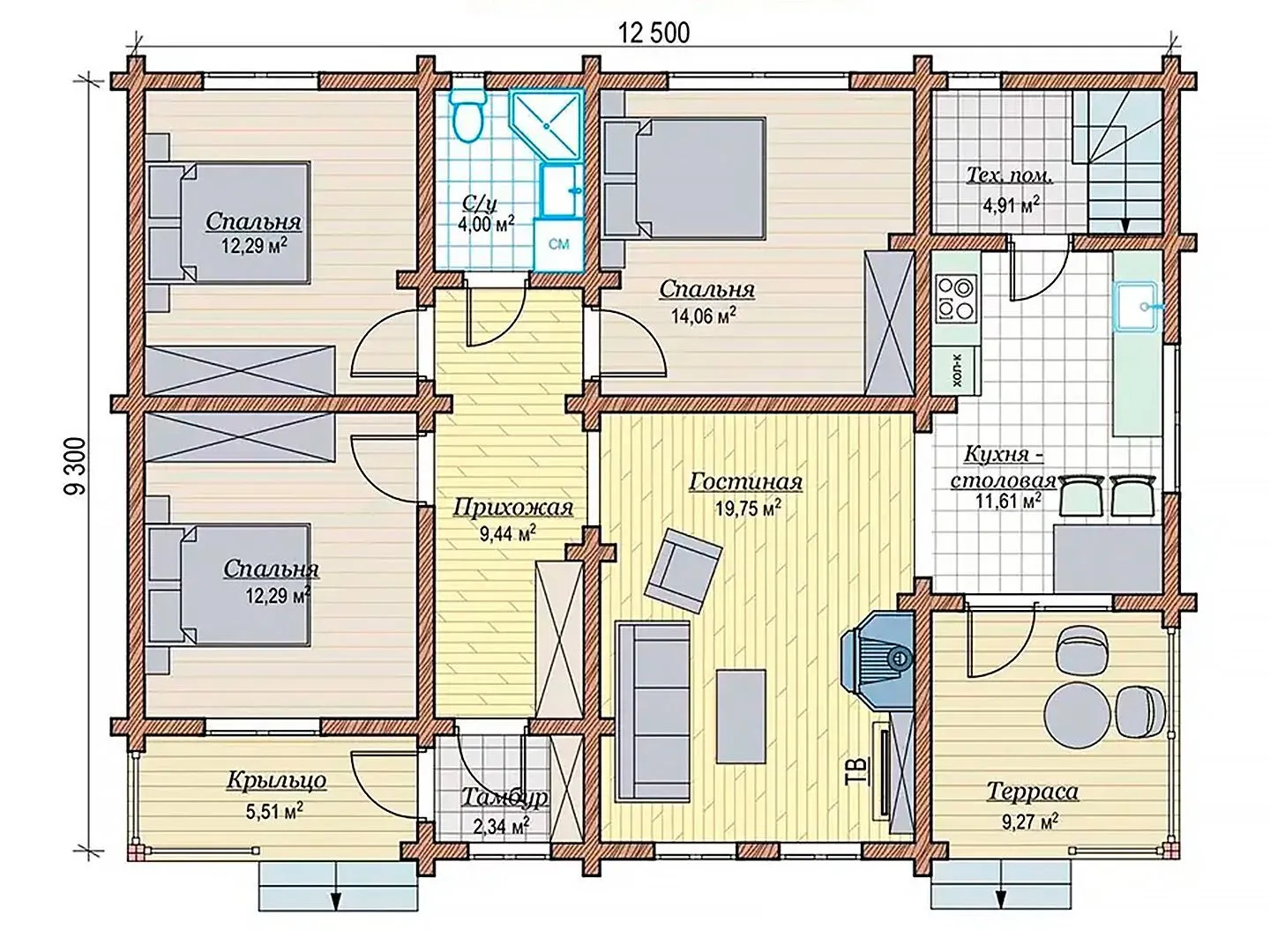 Одноэтажный дом Фюссен 9,3х12.5