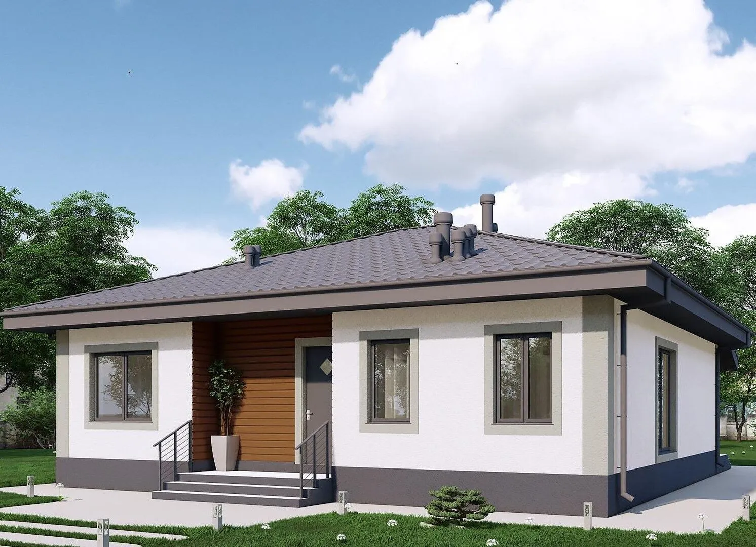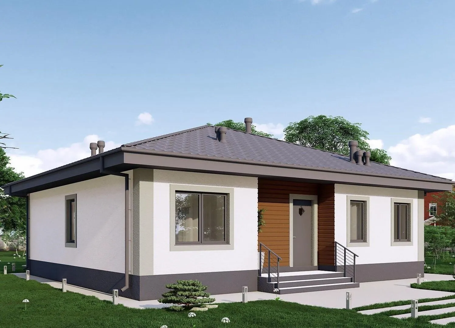 Добро пожаловать в «Гиза» — симпатичный одноэтажный дом, созданный для комфортного круглогодичного проживания в современном стиле классики. Его изысканный фасад, выполненный из керамзитобетонных блоков, сочетается с традиционной четырехскатной (вальмовой) кровлей, создавая визуальное ощущение устойчивости и благородства. Внутренний план продуман до мелочей: просторный светлый коридор открывает двери к уютной гостиной с большим окном, открывающим вид на ухоженный сад и живописную заднюю террасу, где вы сможете наслаждаться солнечными лучами и вечерними закатами. Этот дом – настоящий оазис уюта, где каждая деталь направлена на ваше удобство: тихий этаж с минимальными перекрытиями обеспечивает идеальную акустику, а чердачное помещение предлагает дополнительные возможности для хранения или превращения в дополнительную комнату по вашему усмотрению. Необходимой инфраструктуры в виде пристроенного гаража или версни в доме нет, но к нему легко можно добавить удобную крытую стоянку, если понадобится. «Гиза» дарит атмосферу спокойствия и благоприятную среду для жизни, где традиции гармонично сочетаются с современными удобствами. Войдите в дом и почувствуйте, что здесь начинается новый, более теплый этап вашей жизни.