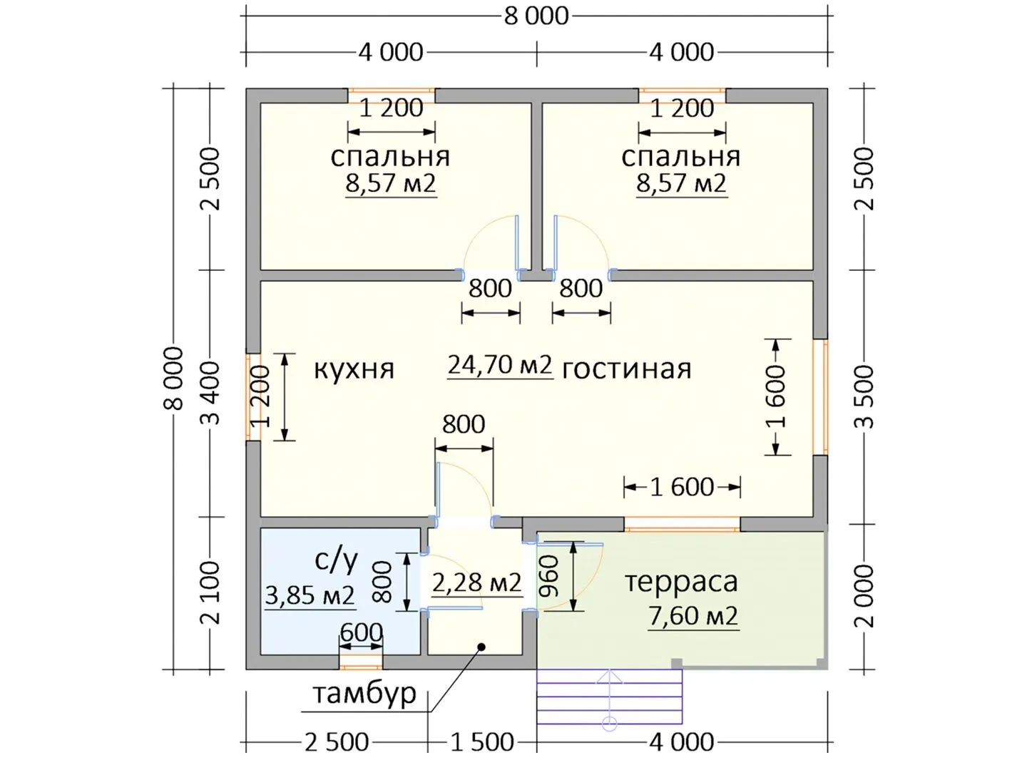 Одноэтажный дом К-11 (2 спальни)