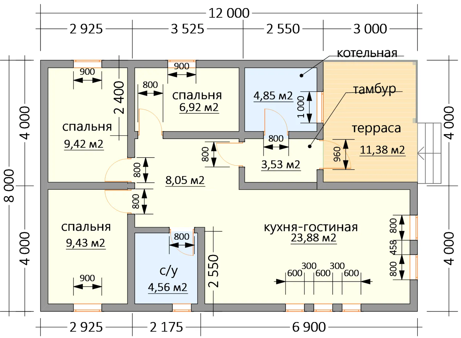 Заказать конусльтацию по:Одноэтажный дом К-14 (3 спальни)