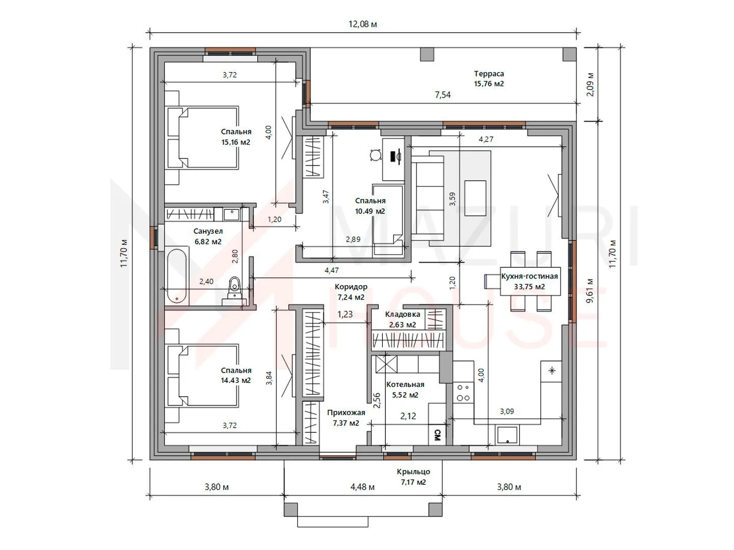 Заказать конусльтацию по:Одноэтажный дом «Кинтамани-126»