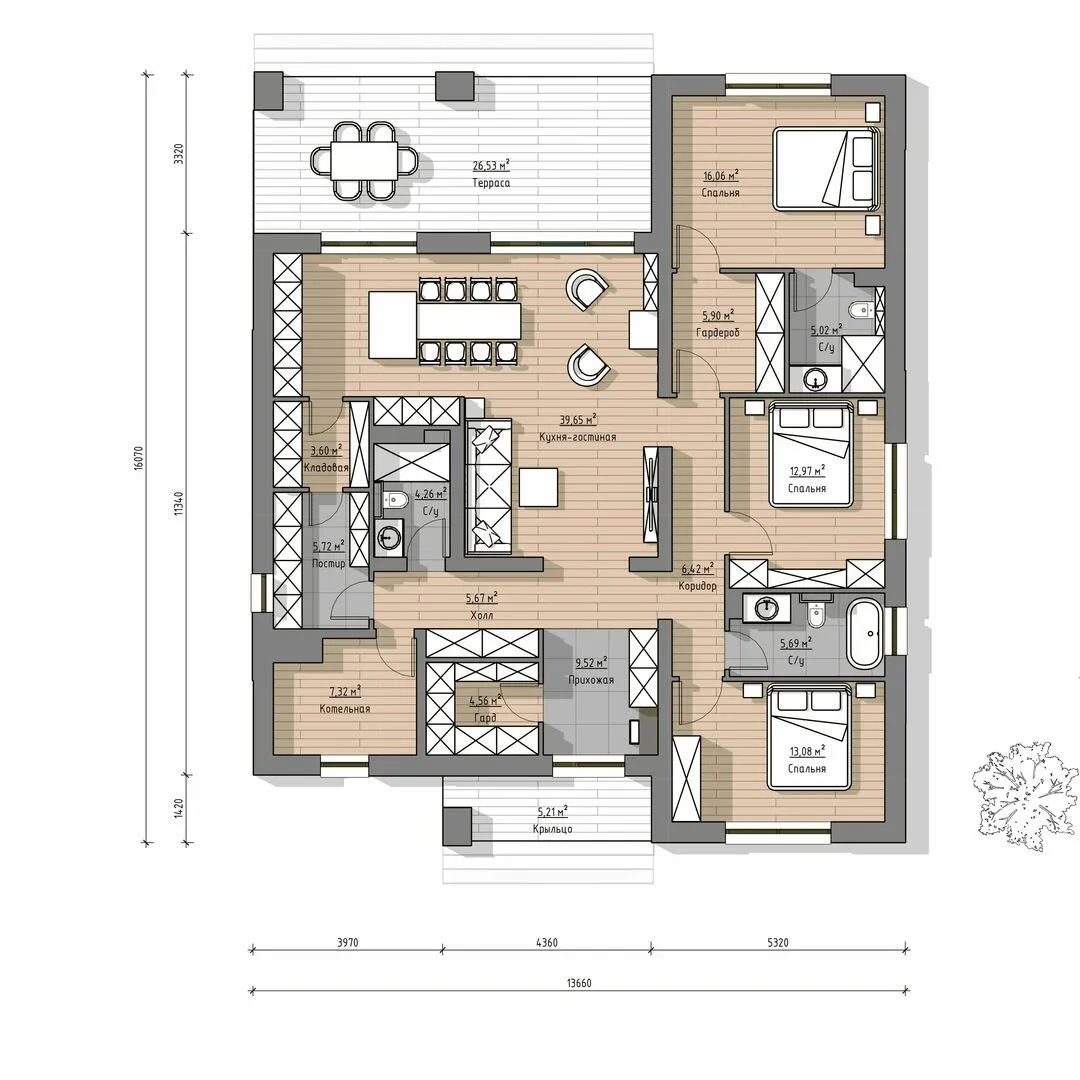 Одноэтажный дом от компании UNIT серии Премиум 141 TK