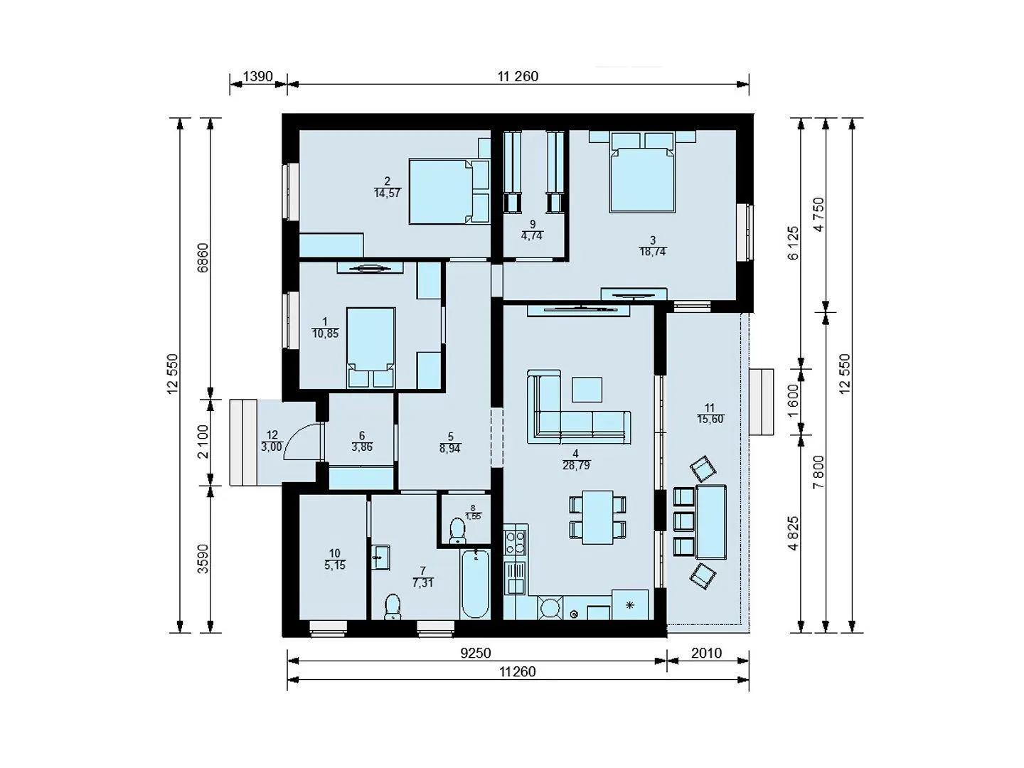 Приглашаем вас познакомиться с элегантным и уютным домом по проекту S‑124 – идеальным решением для тех, кто ценит комфорт круглогодичного проживания в классическом стиле. В одном просторном этаже собраны все необходимые помещения: светлая гостиная, функциональная кухня, несколько спокойных спален, где каждый сможет найти гармонию и отдых. Внутреннее убранство подчёркивает строгую элегантность: высокие потолки, большие оконные проёмы, которые мягко наполняют комнаты теплом солнечного света и придают ощущение простора. Особенности архитектурного решения делают этот дом поистине привлекательным. Совремённый фасад из газобетонных блоков выглядит чистым и современным, одновременно защищая тепло от холода и жару от летней жары. Крыловка – вальмовая, четырёхскатная, обеспечивает надёжную защиту от осадков и придаёт дому гармоничный силуэт. Терраса и внутренний чердак – это просторы для ваших уютных летних вечеров и пространства для хранения вещей и сезонных принадлежностей. Этот дом – настоящий оазис спокойствия и уюта, который позволяет наслаждаться жизнью в любой пору года и в каждой детали чувствовать заботу о своих близких. Выбирайте классический комфорт с практичностью и надёжностью – ваш новый дом по проекту S‑124 ждет вас!