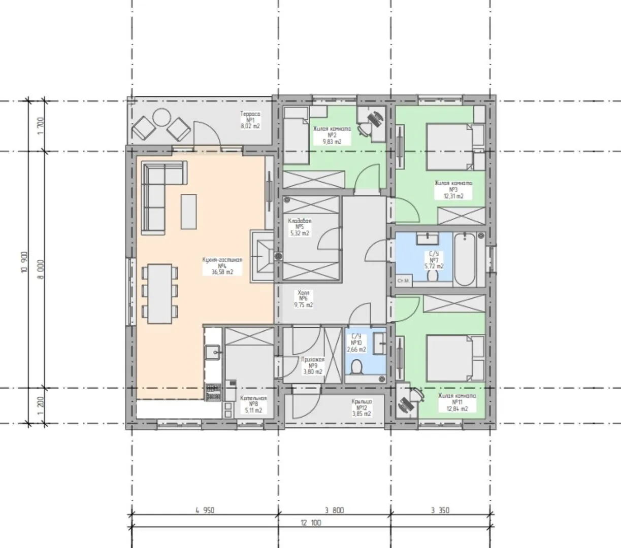 Площадь дома 115 м2