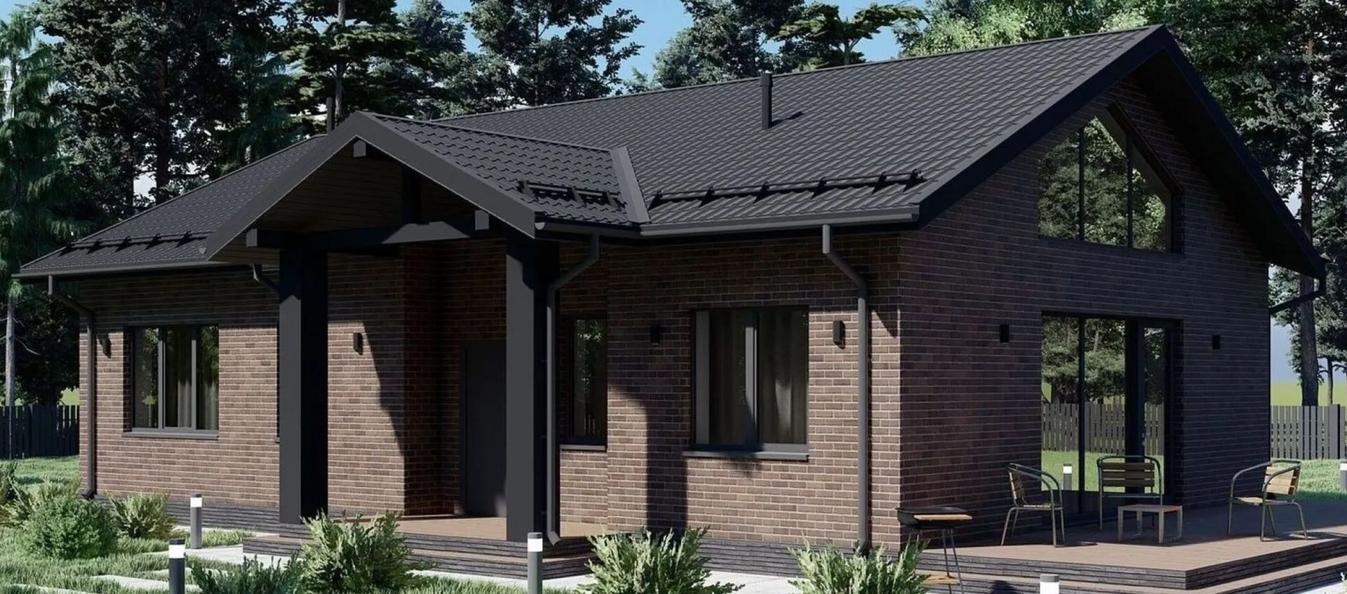 Заказать конусльтацию по:Одноэтажный дом с большими окнами S-108