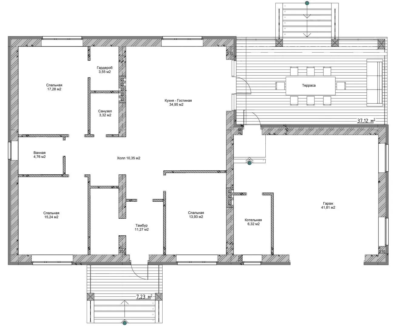 Одноэтажный дом с гаражом АС-86/ОД-207,44/24
