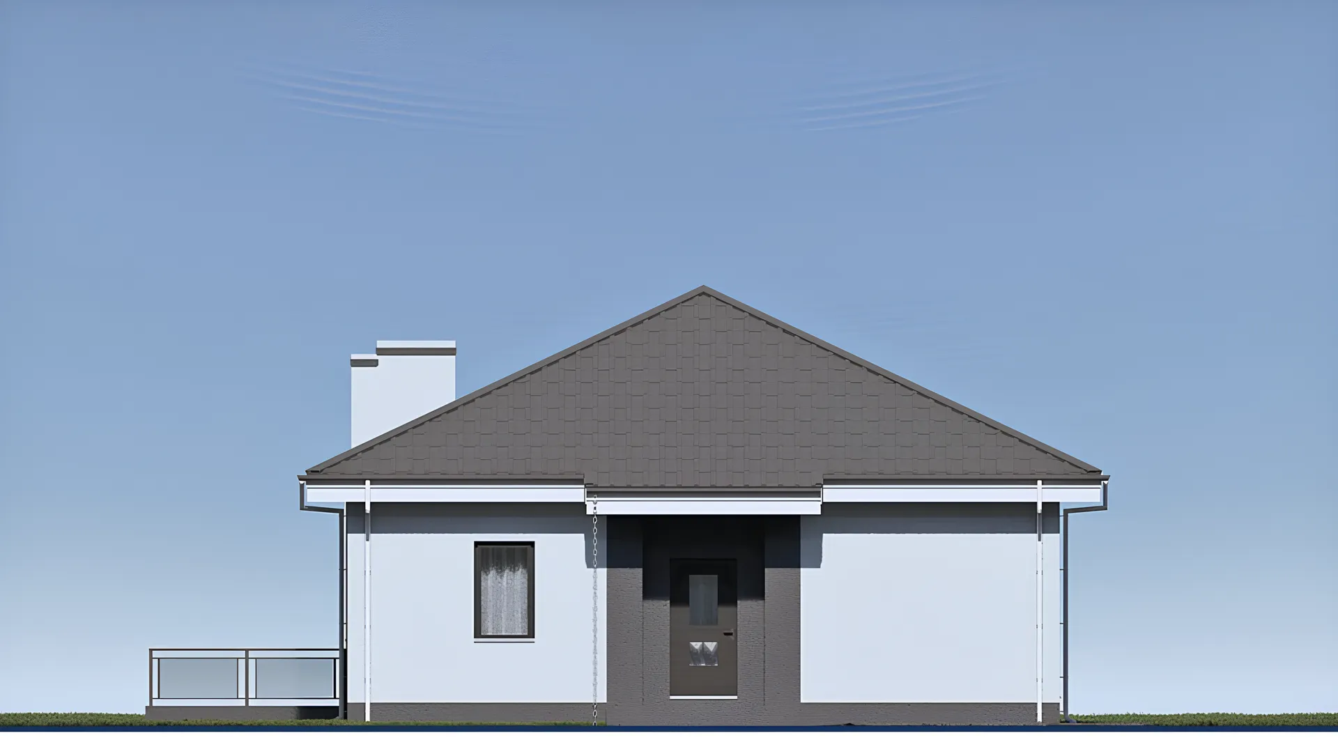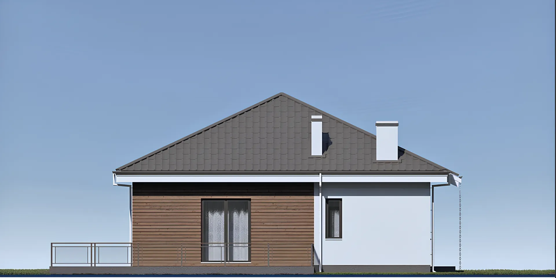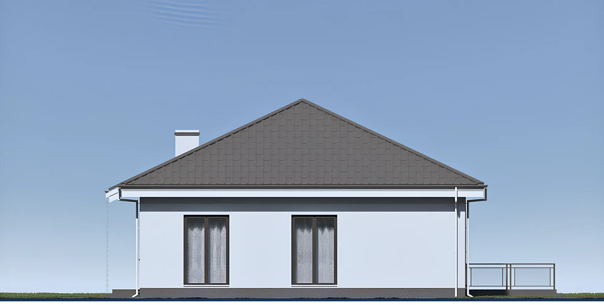 Одноэтажный дом с террасой, 3 спальнями и отделкой штукатуркой
