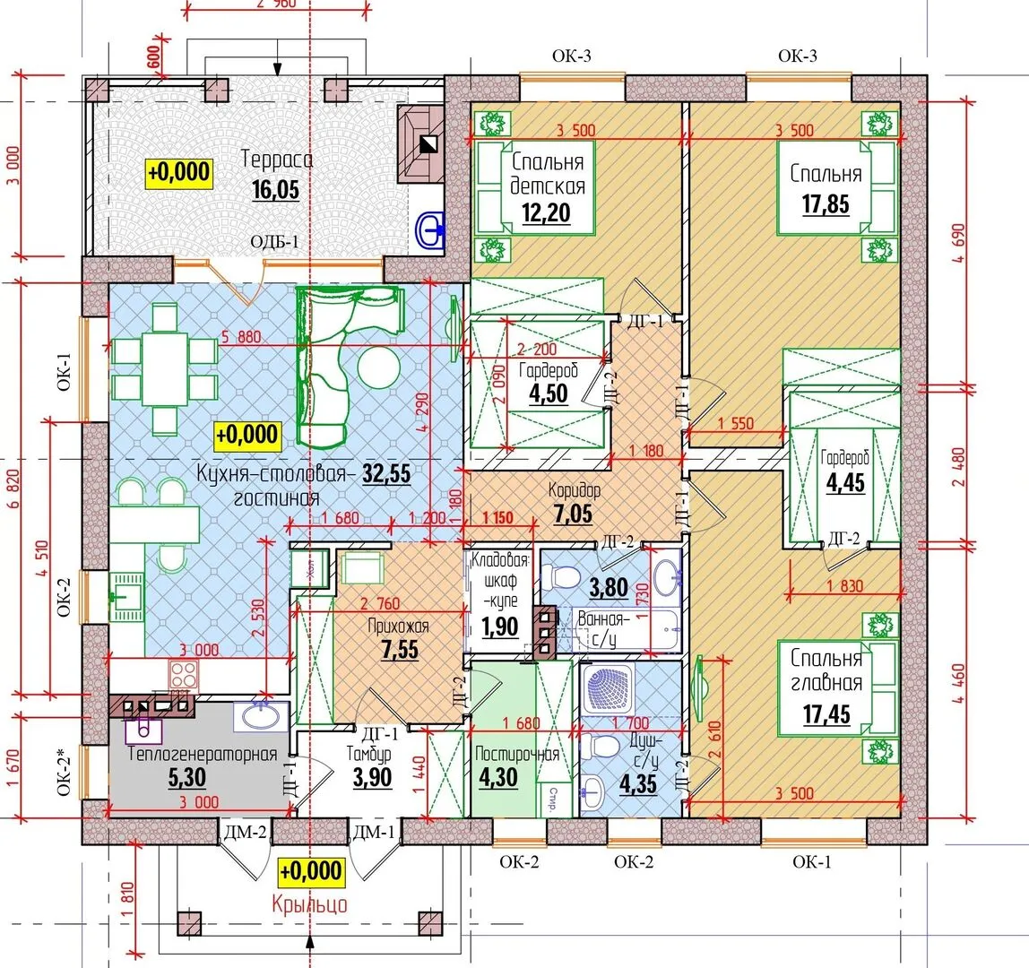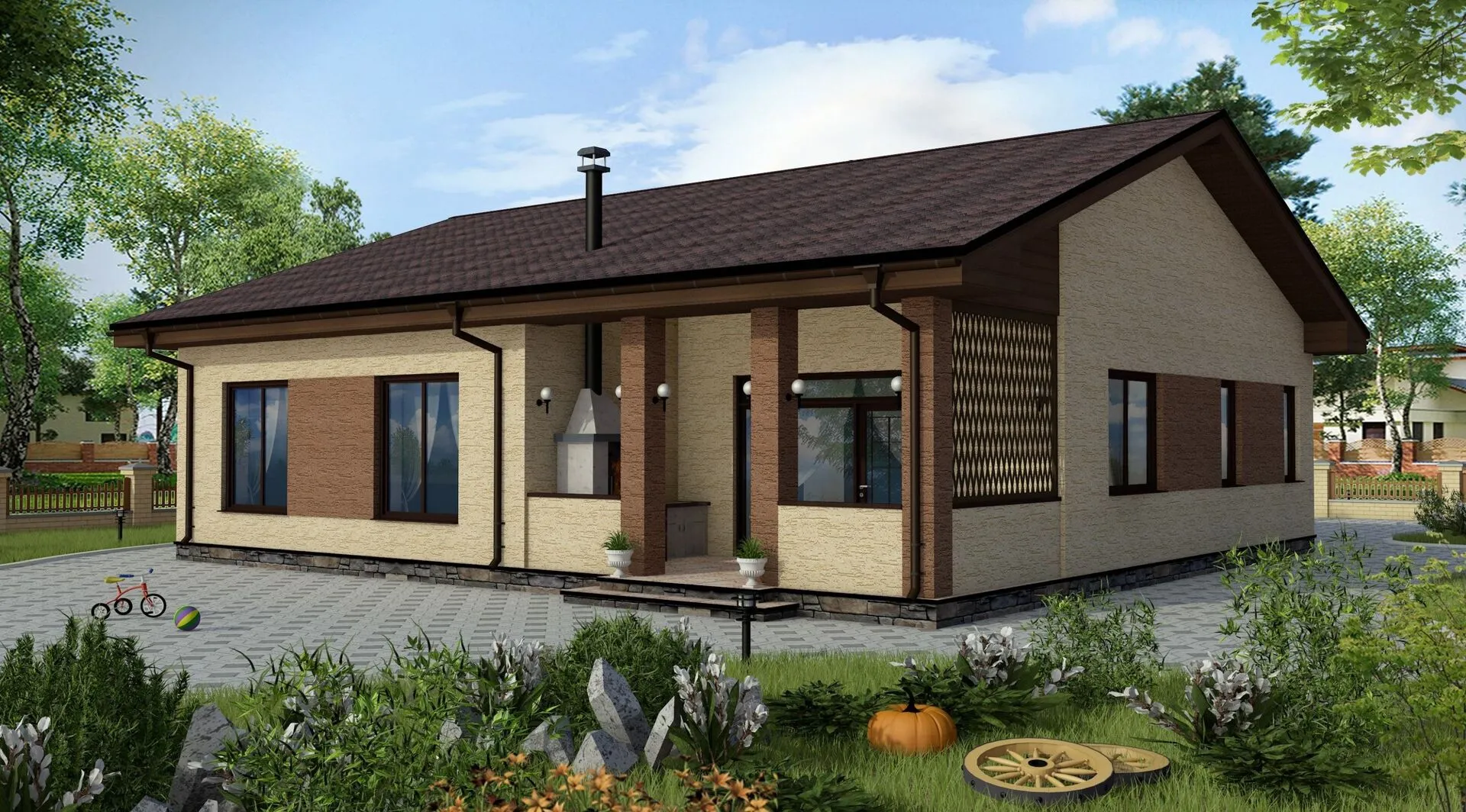 Заказать конусльтацию по:Одноэтажный дом с террасой В-127-3