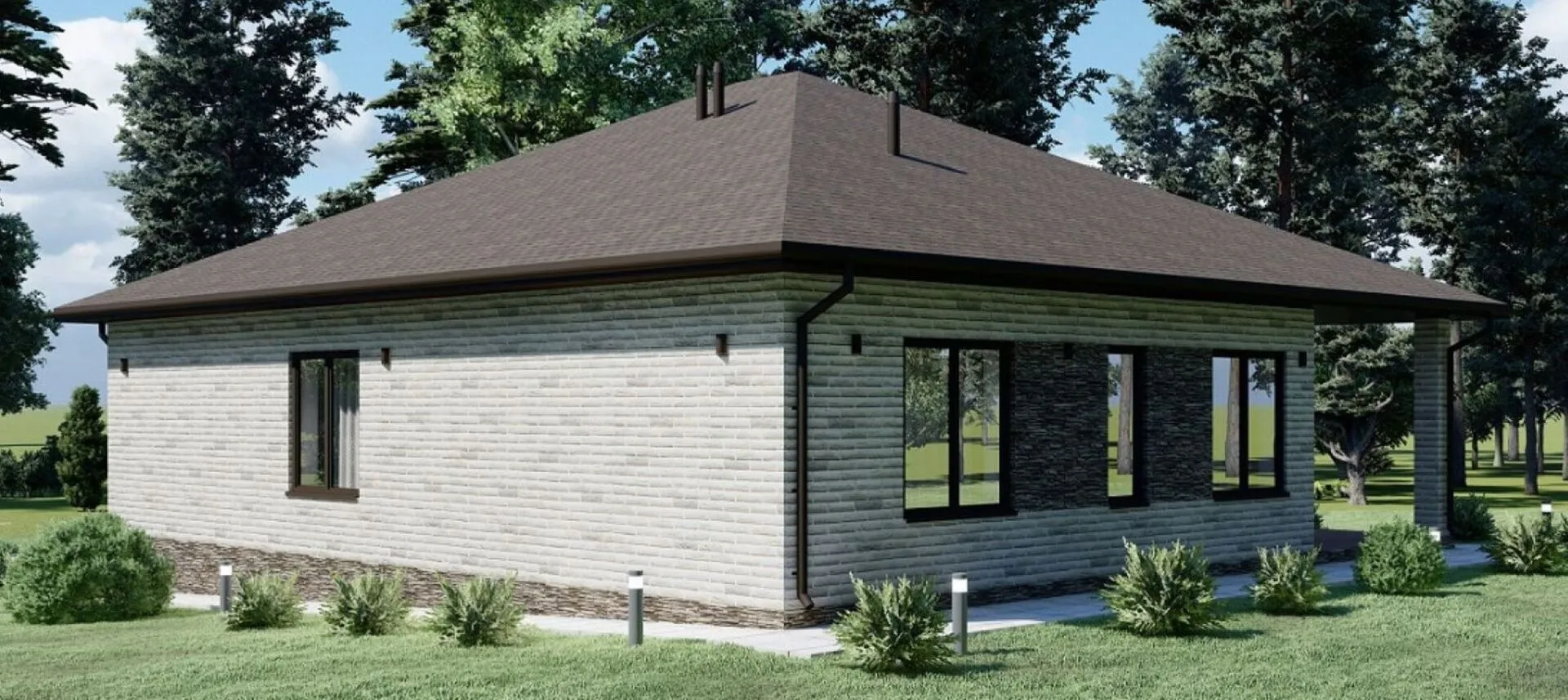 Одноэтажный дом в стиле Шале с гаражом