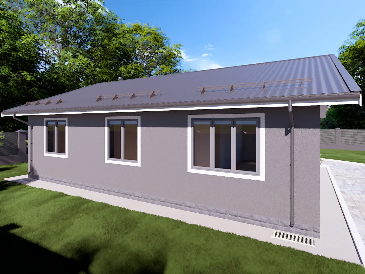 Добро пожаловать в уютный уголок, где классика европейского дизайна встречается с комфортом и практичностью – одноэтажный дом «Уют‑10». Счётно спланированная планировка без дополнительных этажей делает его идеальным как для семей с детьми, так и для тех, кто ценит простоту и беззаботность. Каждый уголок этого дома пропитан светом, а большие окошки позволяют наслаждаться видами вашего двора и окружающей природы. Дом «Уют‑10» построен из высококачественных газобетонных блоков, которые обеспечивают отличную тепло- и звукоизоляцию, создавая идеальные условия для круглогодичного проживания. Двускатная крыша не только придаёт дому элегантный европейский внешний вид, но и защищает ваши вещи от непогоды, одновременно экономя энергию. Внутри вы ощутите гармонию простых линий, открытых пространств и мягкой, приятной атмосферы, создающей ощущение домашнего уюта. Без лишних навесов, веранд, гаража или чердака, «Уют‑10» сфокусирован на том, чтобы вам было комфортнее: от простого в обслуживании и низкого потребления ресурсов, до лёгкости в эксплуатации. Если вы ищете дом, где каждая деталь продумана, а уют – ваш незаменимый собеседник, «Уют‑10» станет идеальным выбором. ✨