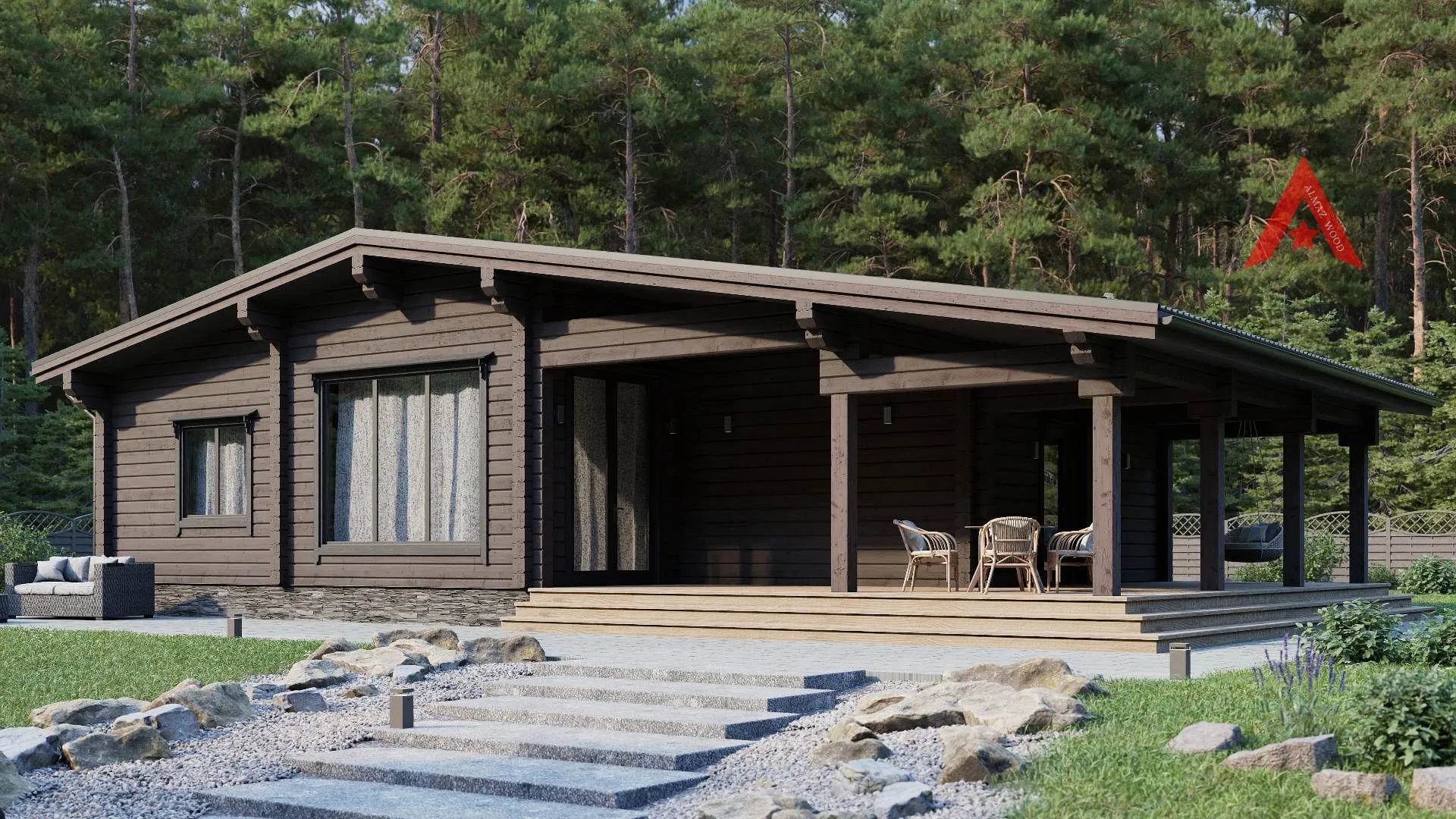 Одноэтажный дом в стиле ШАЛЕ