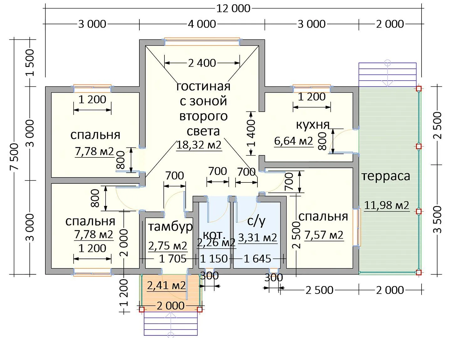 Заказать конусльтацию по:Одноэтажный каркасный дом К-23 (три спальни)