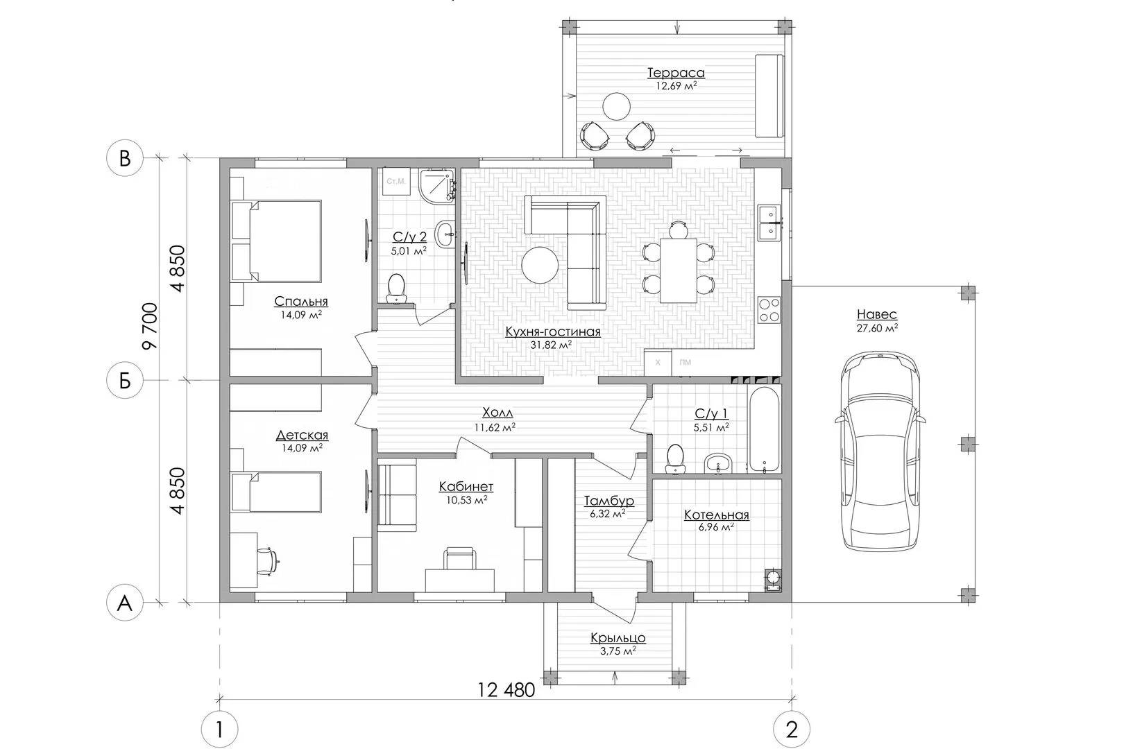 Одноэтажный каркасный дом «Проект 3.38»
