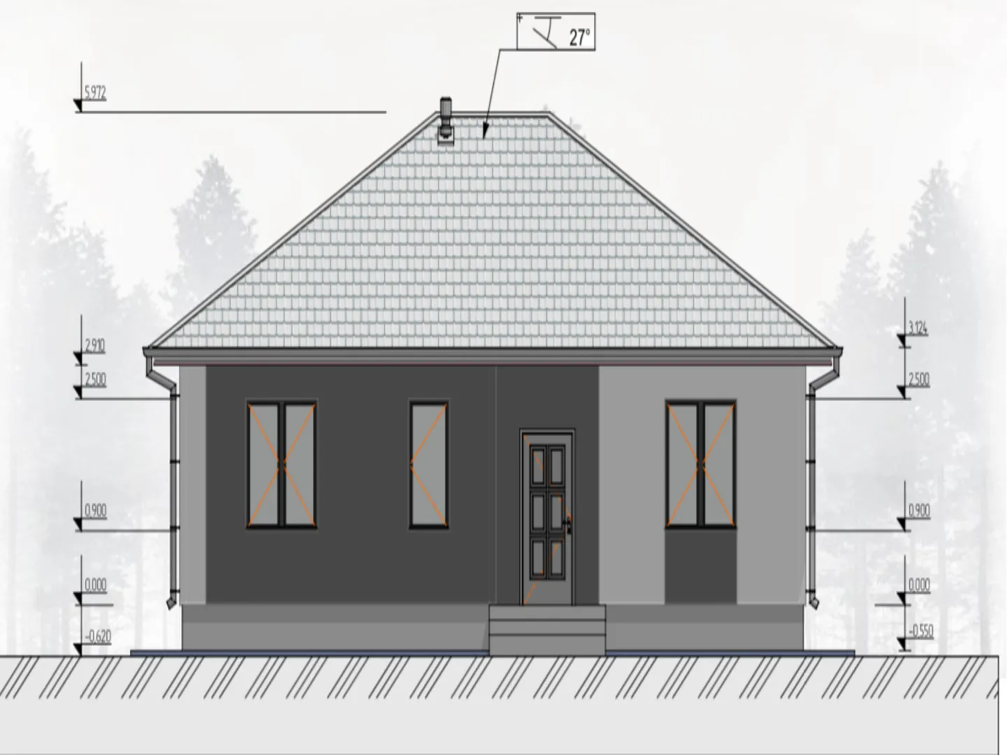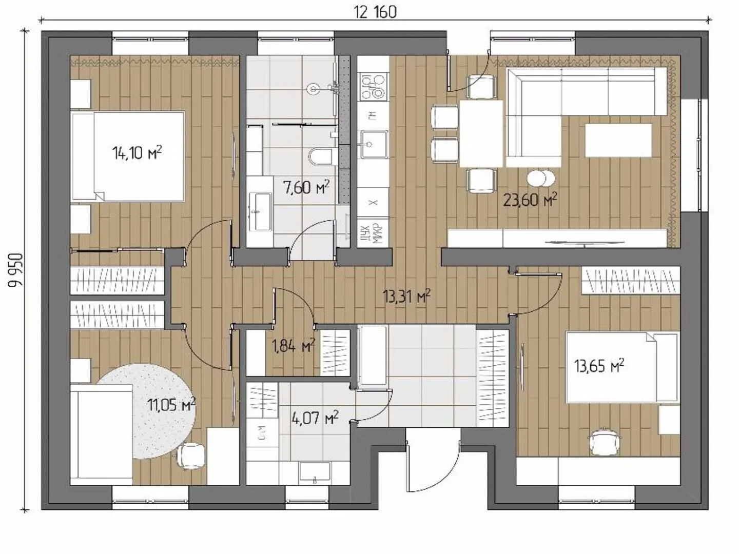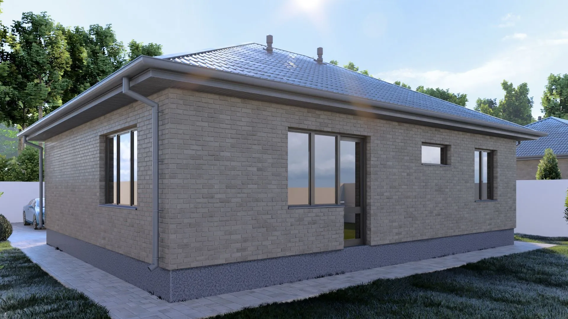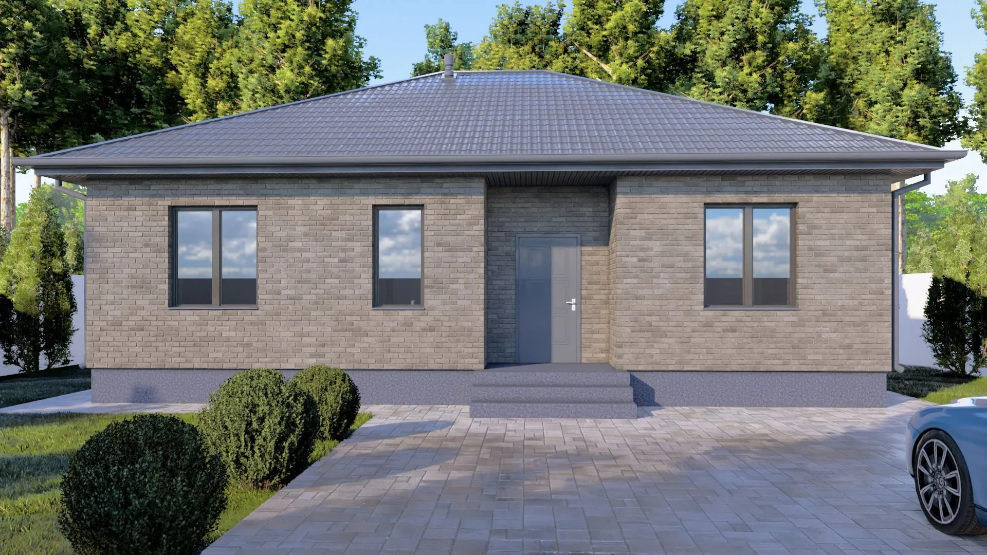 Одноэтажный кирпичный дом COMFORT — 118 m2 (Серый облицовочный кирпич)