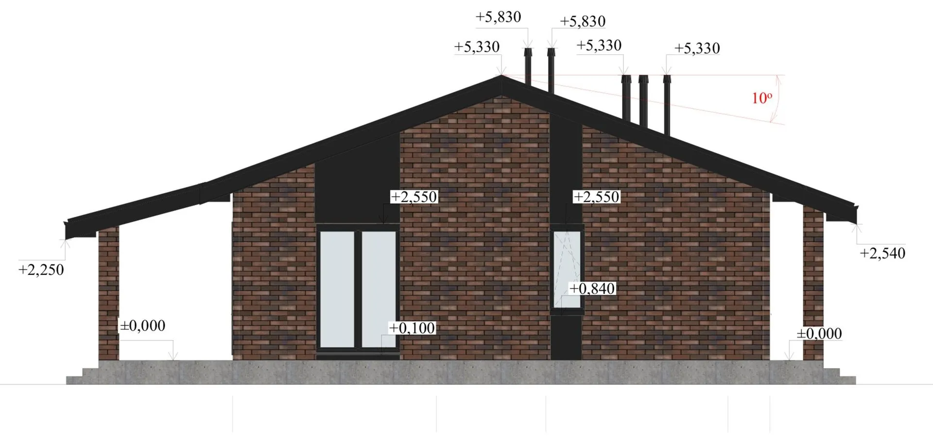 Заказать конусльтацию по:Одноэтажный кирпичный дом ИП-135