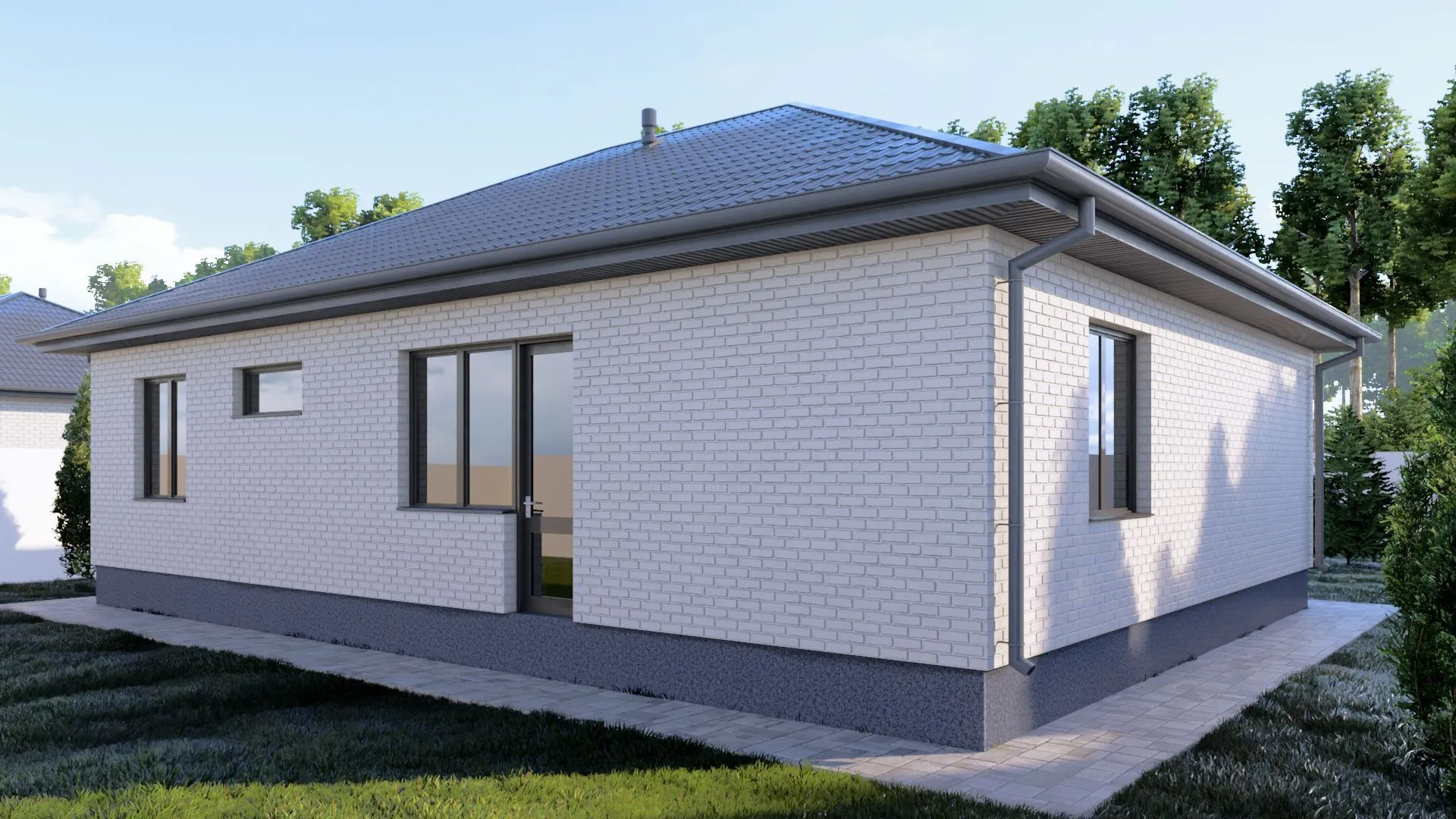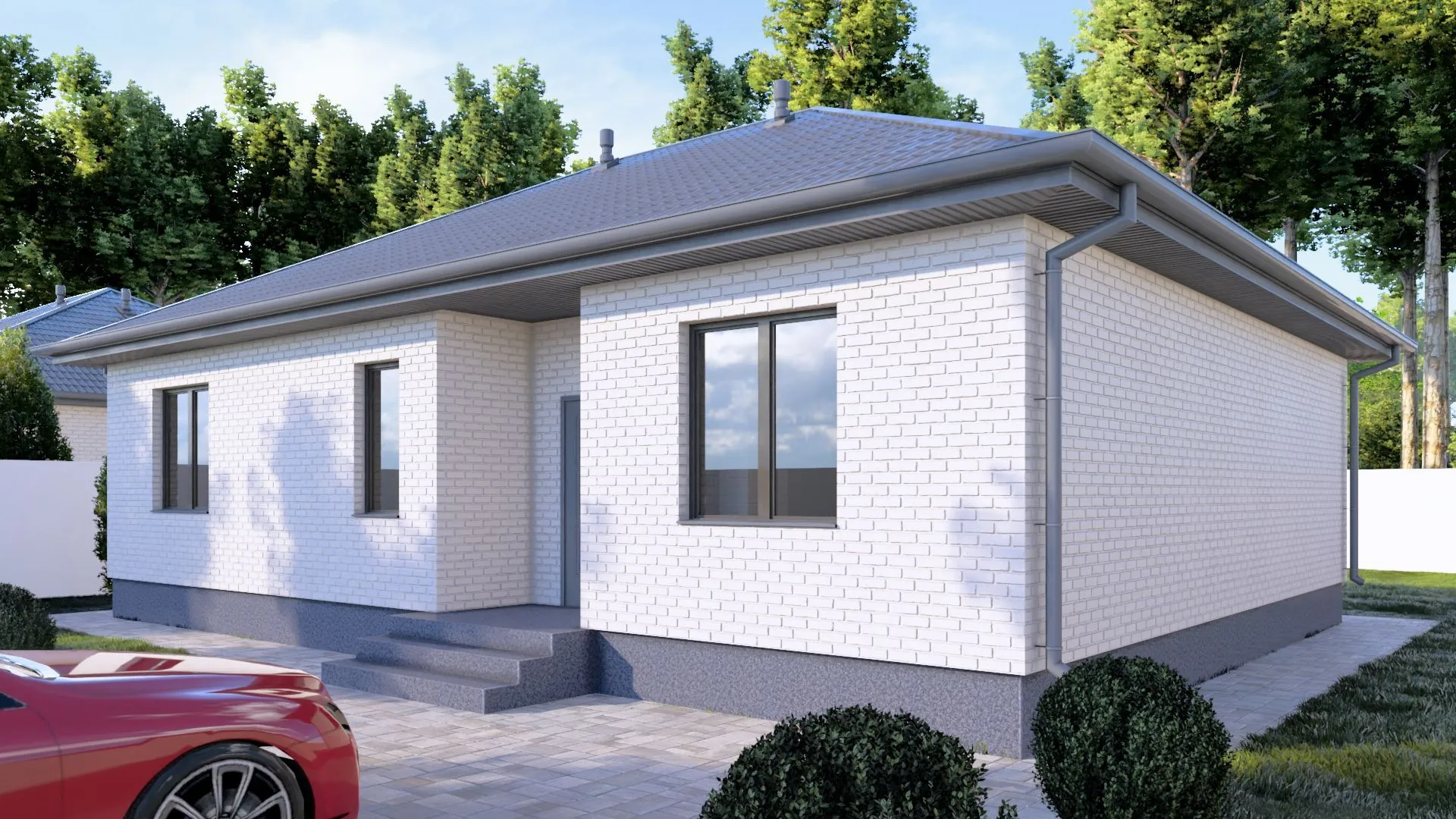 Одноэтажный кирпичный дом BUSINESS — 131 m2 Белый облицовочный кирпич