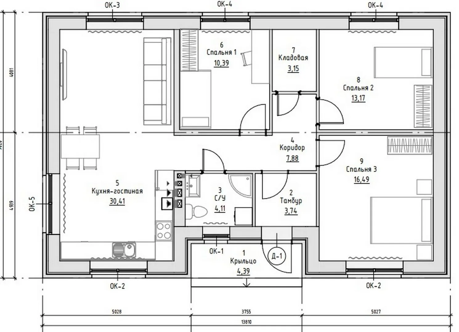 Одноэтажный кирпичный дом 94 кв.м. ЭП_06_24-13_Ч