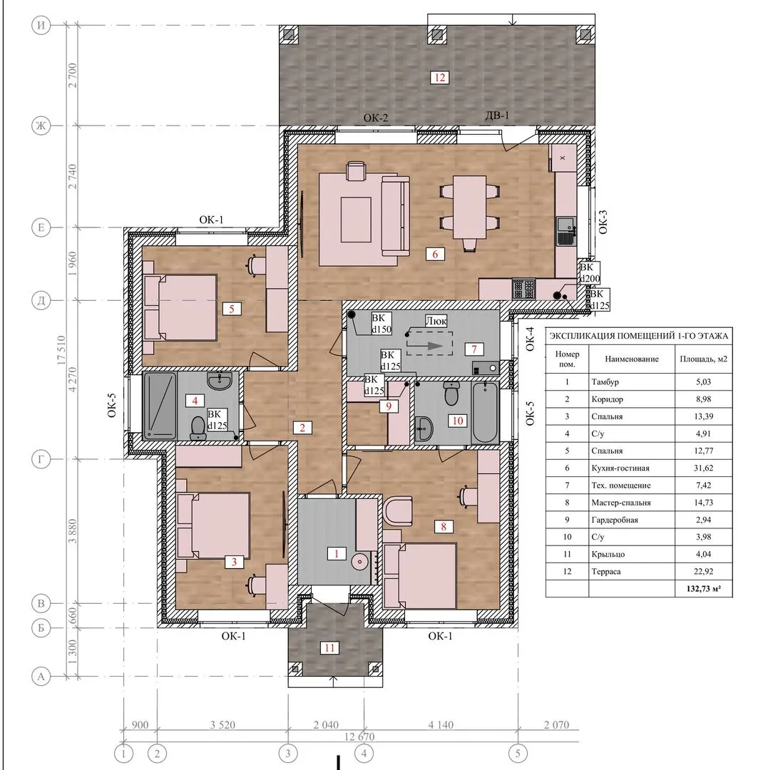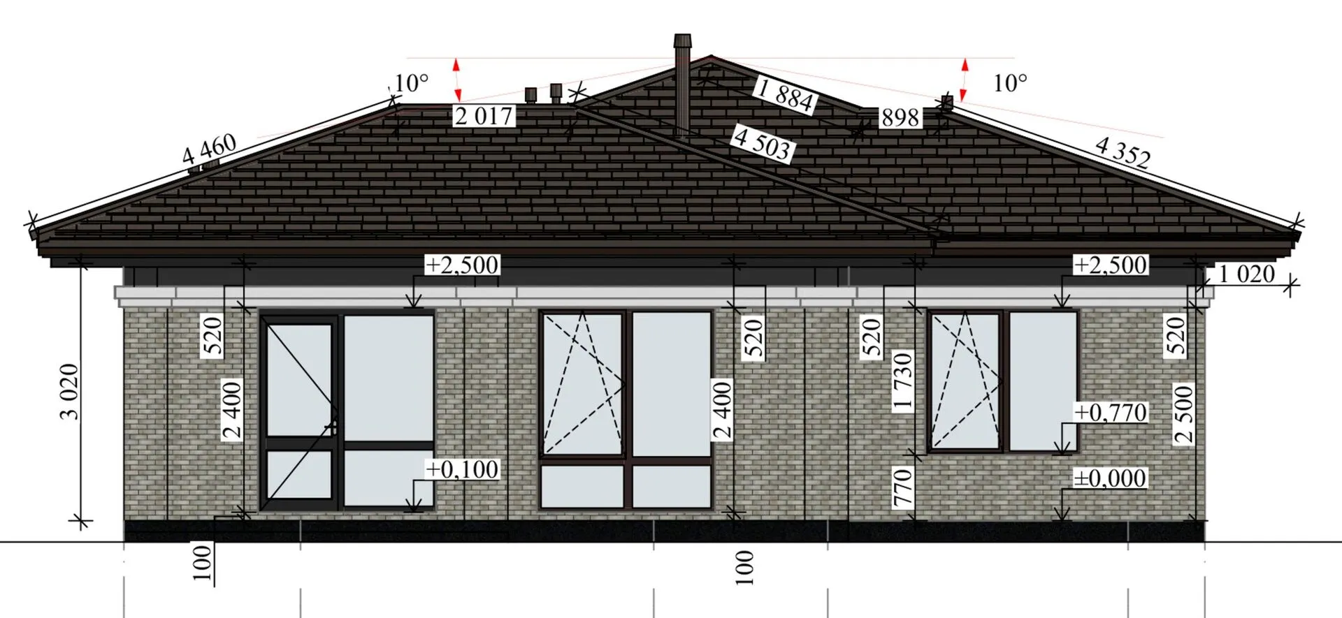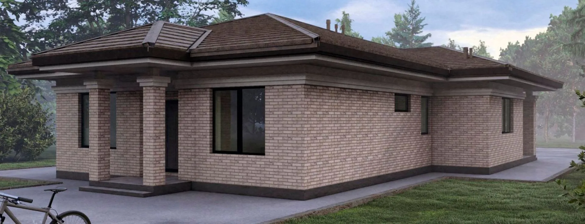 Заказать конусльтацию по:Одноэтажный кирпичный дом ИП-138