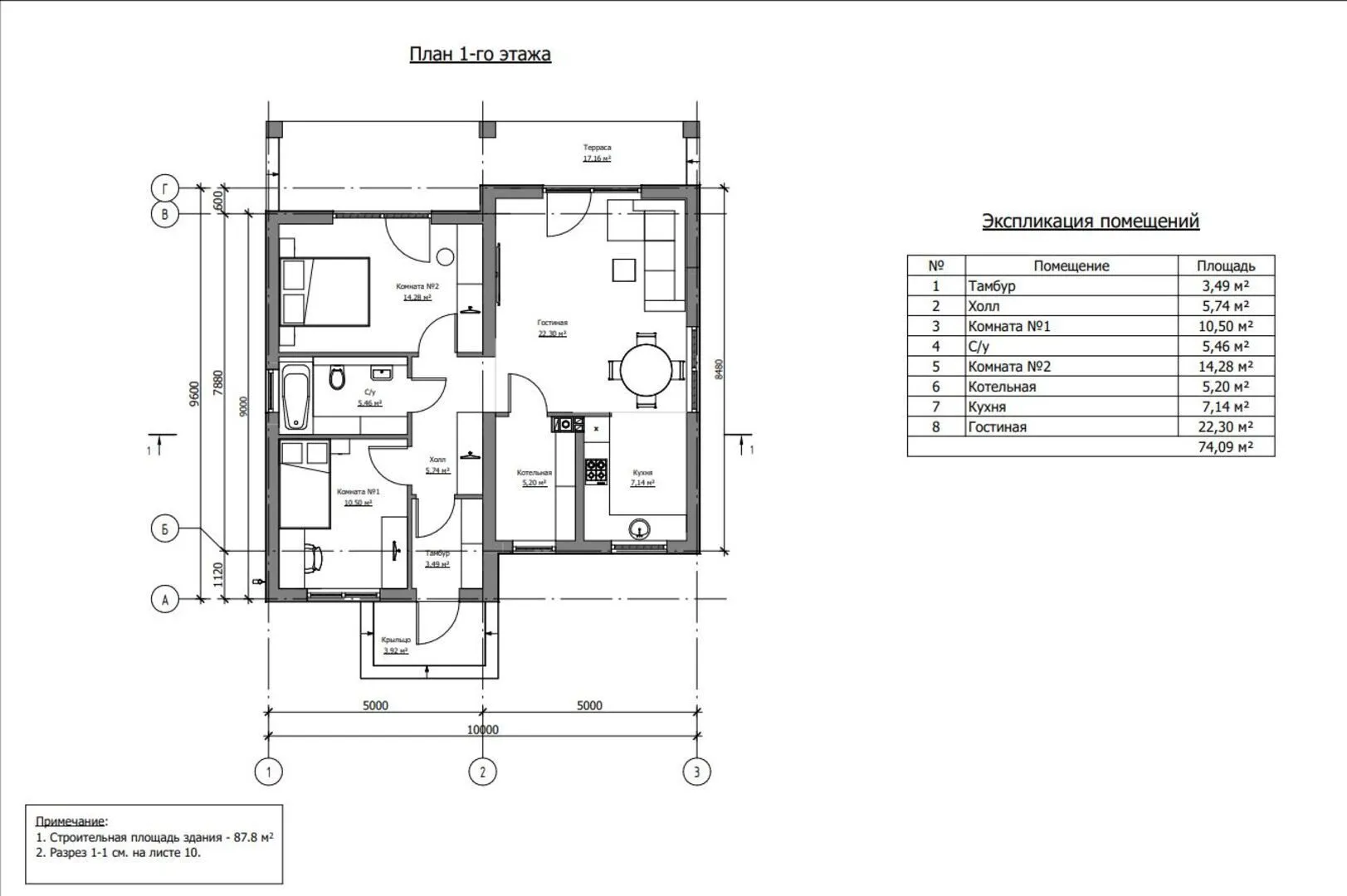 Одноэтажный жилой дом № 1