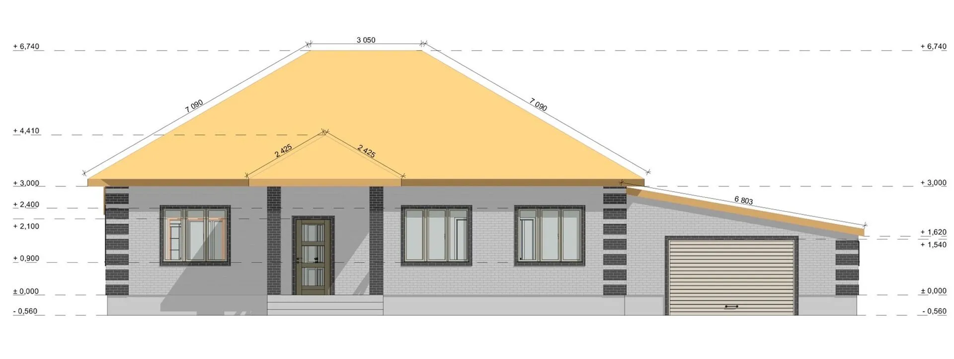 Одноэтажный дом 100 кв.м, облицовка кирпич-100К