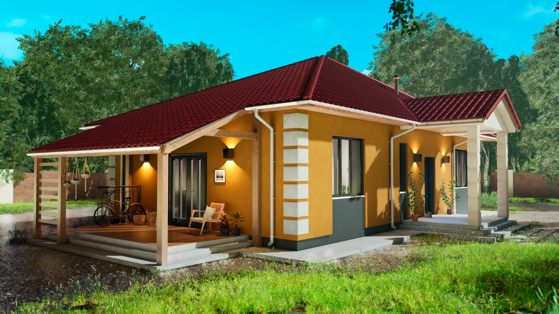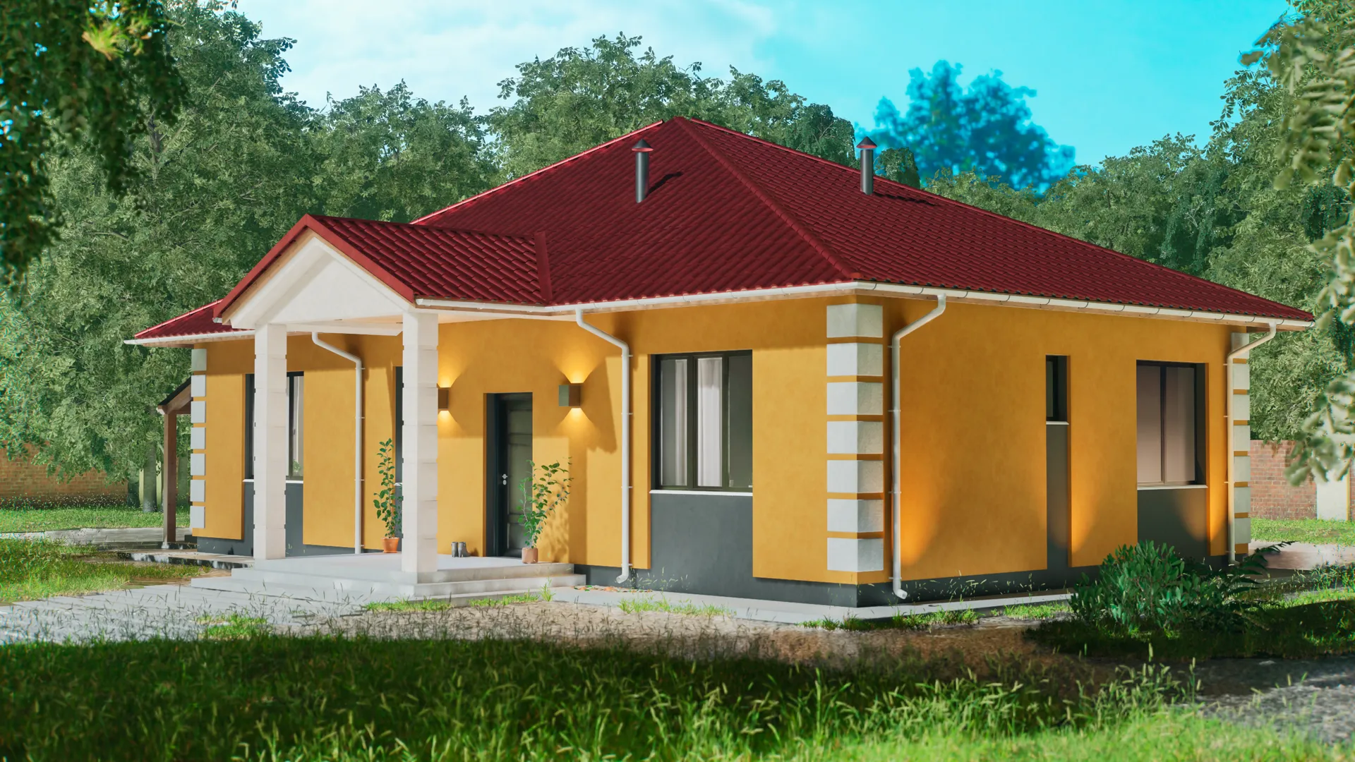 Одноэтажный кирпичный дом COMFORT — 118 m2 (Белый облицовочный кирпич)