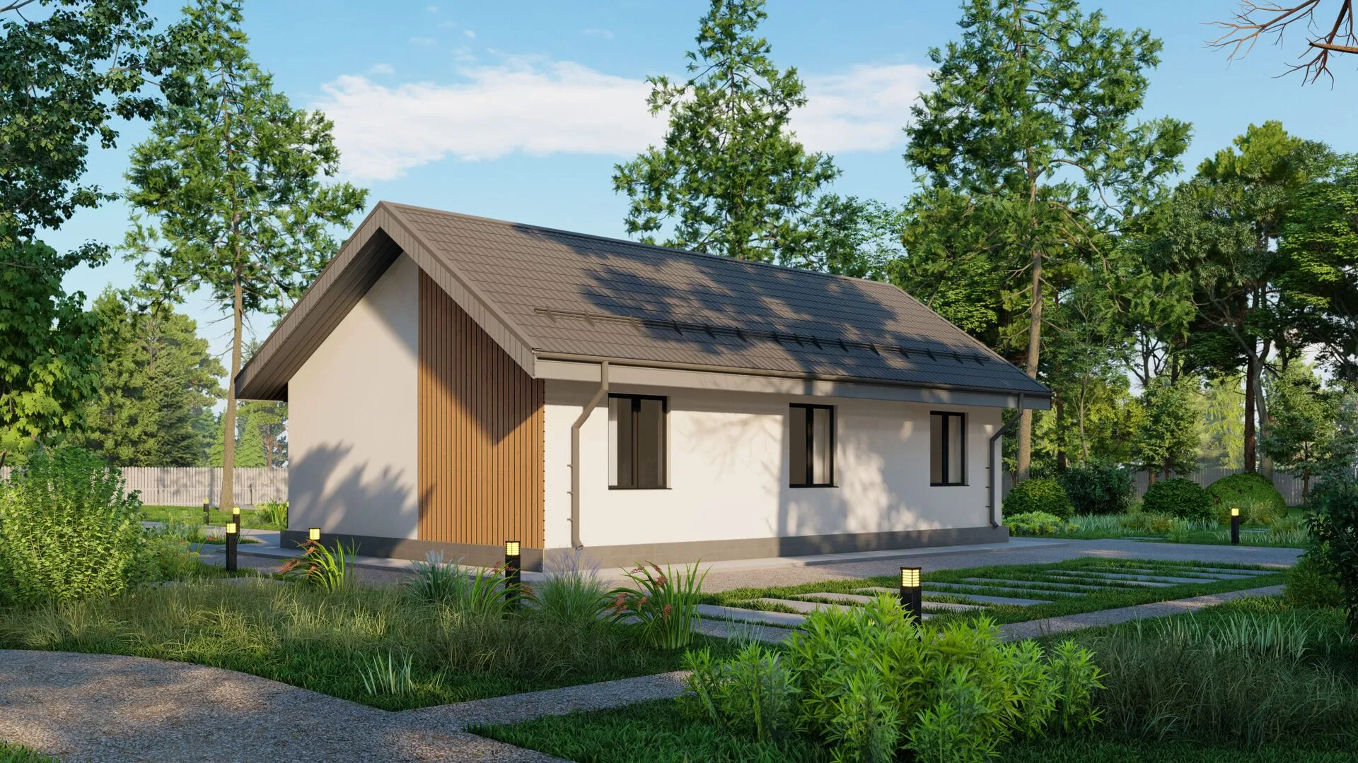Тёплая и уютная атмосфера этого одноэтажного дома с классическим фасадом сразу завораживает. Каждый элемент интерьера тщательно продуман: большие окна воссоздают ощущение простора и подчас обрамляют живописные виды, а лёгкая, ровная внешняя оболочка из полистиролбетона обеспечивает отличную тепло- и звукоизоляцию в любое время года. Классический стиль придаёт дому элегантный шарм, который легко впишется как в традиционные, так и в современные концепции домашнего уюта. Пригодный для круглогодичного проживания, дом сочетает практичность и красоту: двускатная крыша создаёт ощущение защищённости, а просторная чердачная площадь может служить дополнительным помещением — будь то уютная игровая зона для детей, кабинет творчества или просто место для хранения сезонных вещей. Отсутствие прицепов и гаража сохраняет чистоту и порядок у подъёма, а компактные размеры позволяют легко адаптировать пространство под индивидуальные потребности вашей семьи. Это идеальное место, где классика встречает современные удобства, чтобы каждый день приносил вам радость и спокойствие.