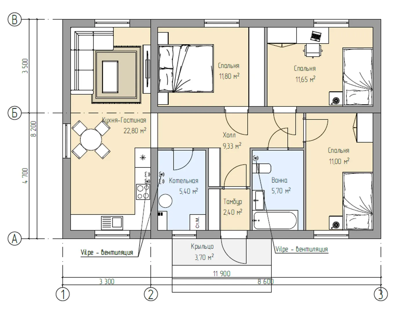 Площадь дома 83 м2