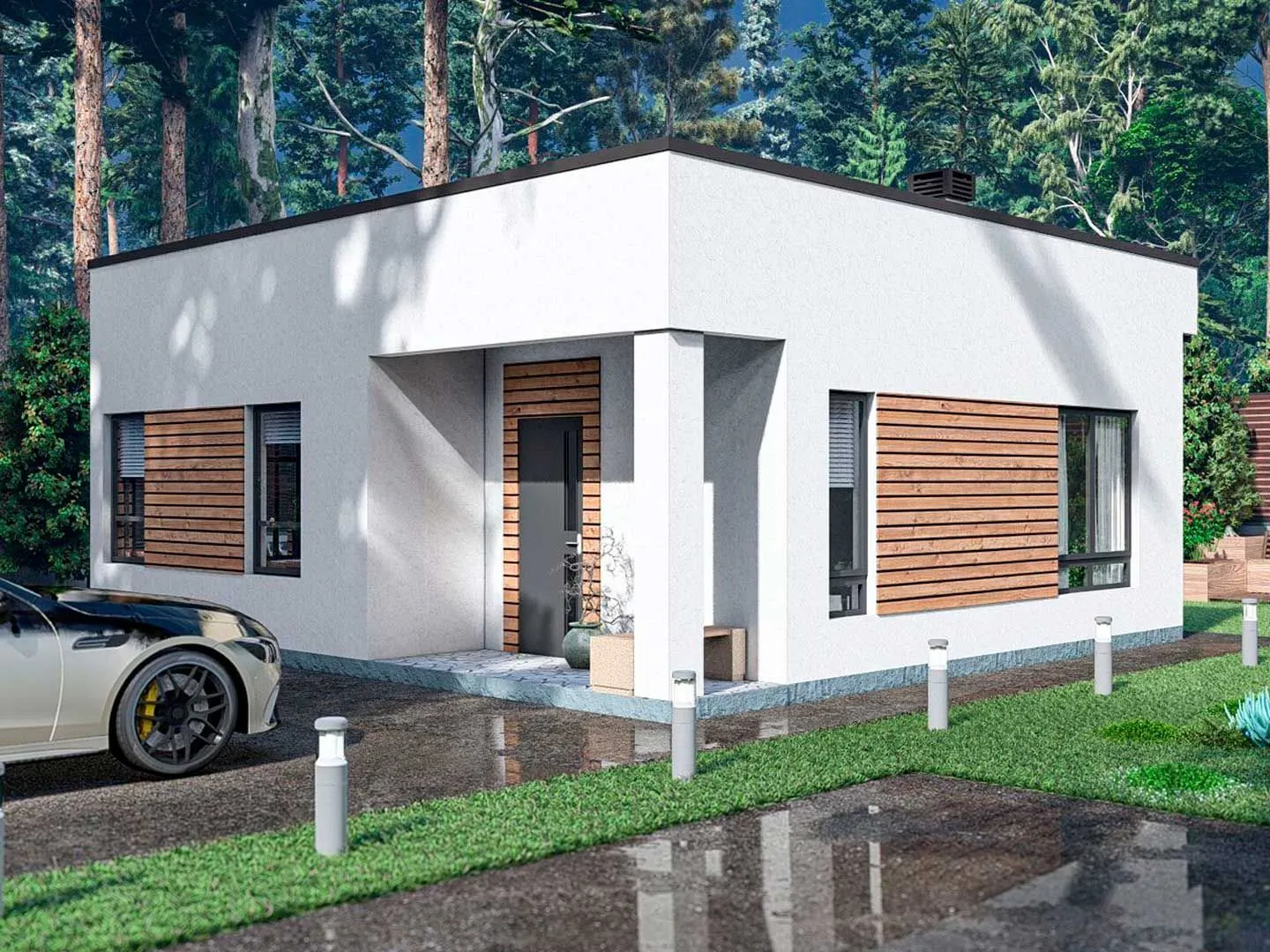 Дом проекта **Бриг (растущий)** – это воплощение современного хай‑тек дизайна, рассчитанное на комфортное круглогодичное проживание. На первом этаже располагаются просторные и светлые помещения, где каждый уголок пронизан изысканными линиями и высоким качеством материалов. Газобетонные блоки наружных стен придают дому не только эстетическую привлекательность, но и отличную теплоизоляцию, позволяя сохранять уютный микроклимат в любую пору года. Плоская крыша подчёркивает строгую геометрию и создает ощущение бесподобной простоты и практичности. Отсутствие балконов, веранд, гаража или чердака не делает дом менее функциональным – напротив, это освобождает пространство от лишних элементов, облегчая уход и позволяя полностью концентрироваться на комфортной жизненной зоне внутри. Внутренний план предлагает гибкое решение для любой семьи: открытая концепция с разделением на зоны для отдыха, работы и развлечений, а также предусмотрено простое решение для хранения. Так вы получаете современный, минималистичный дизайн, который одновременно удобен и практичен, создавая идеальный дом для тех, кто ценит стиль, практичность и энергоэффективность.