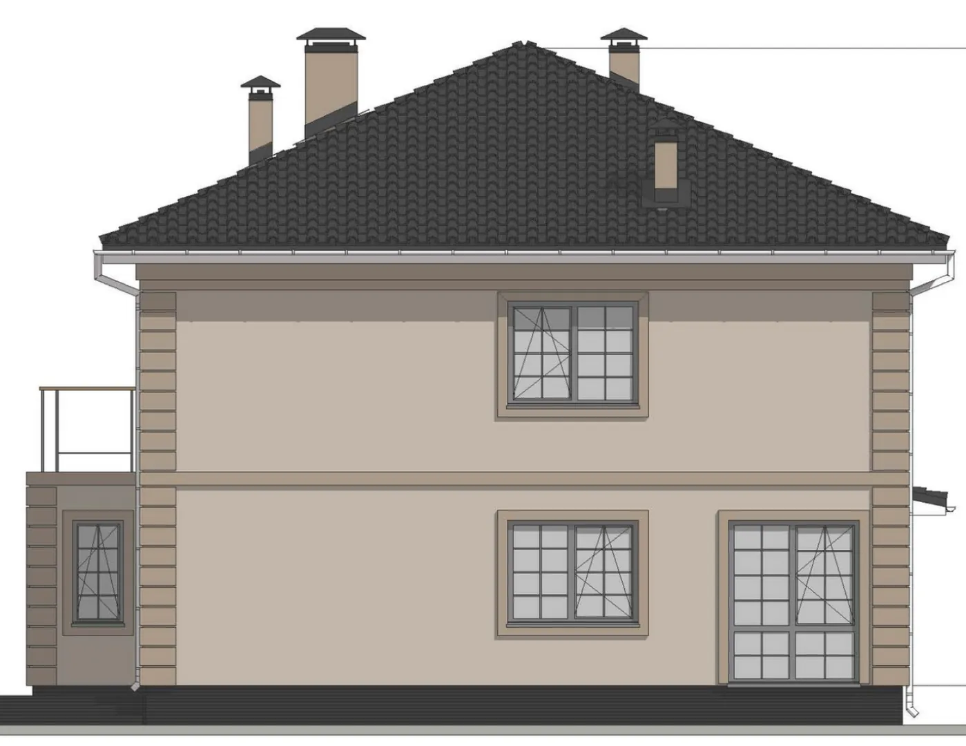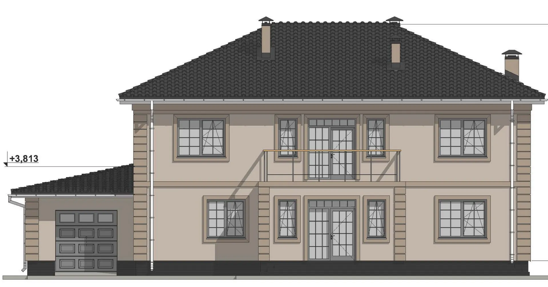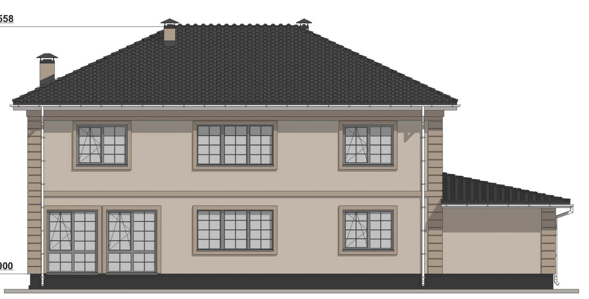 Проект двухэтажного дома с сауной в классическом стиле S-349