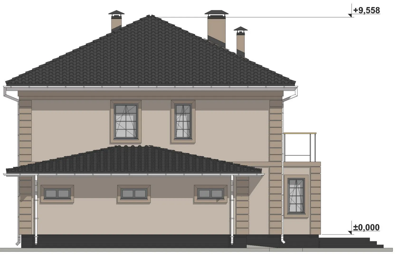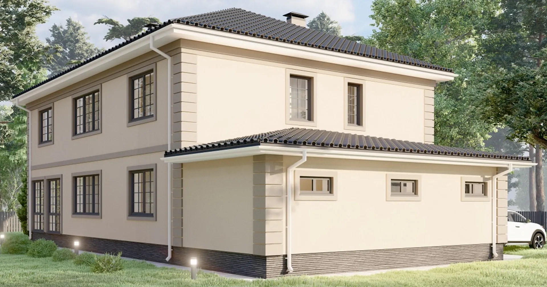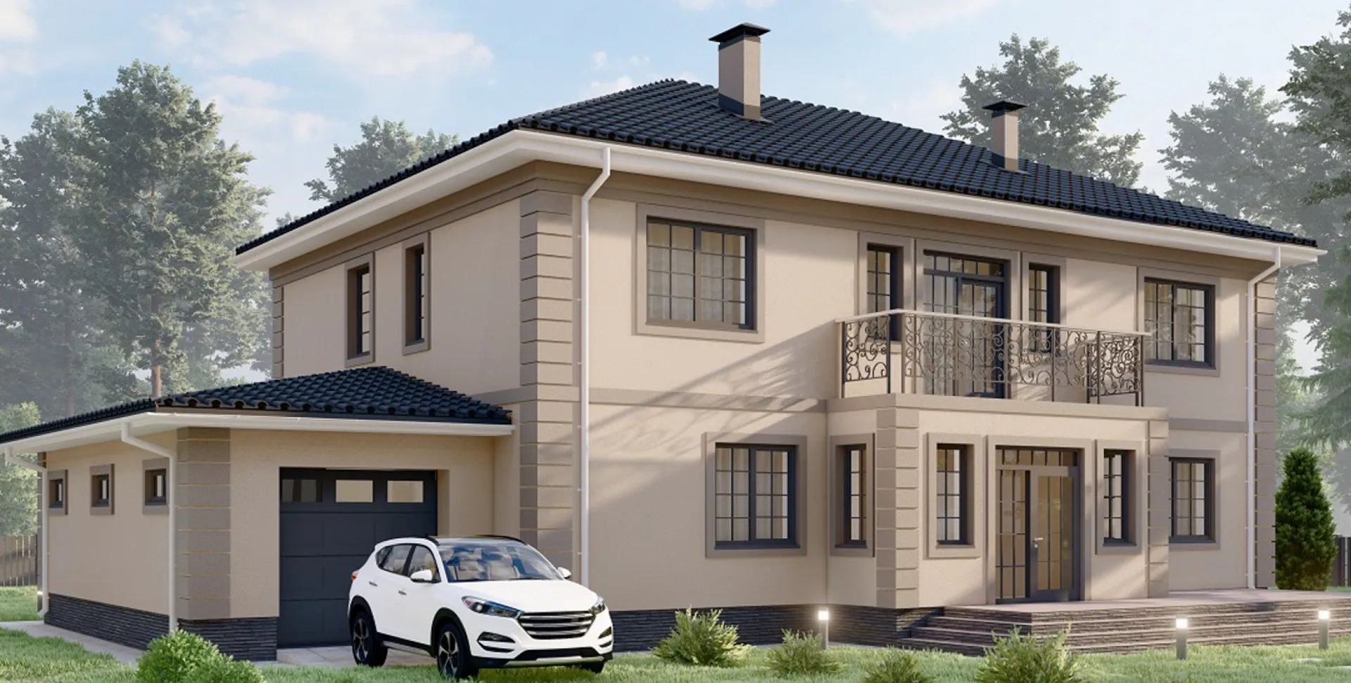 Проект двухэтажного дома с сауной в классическом стиле S-349