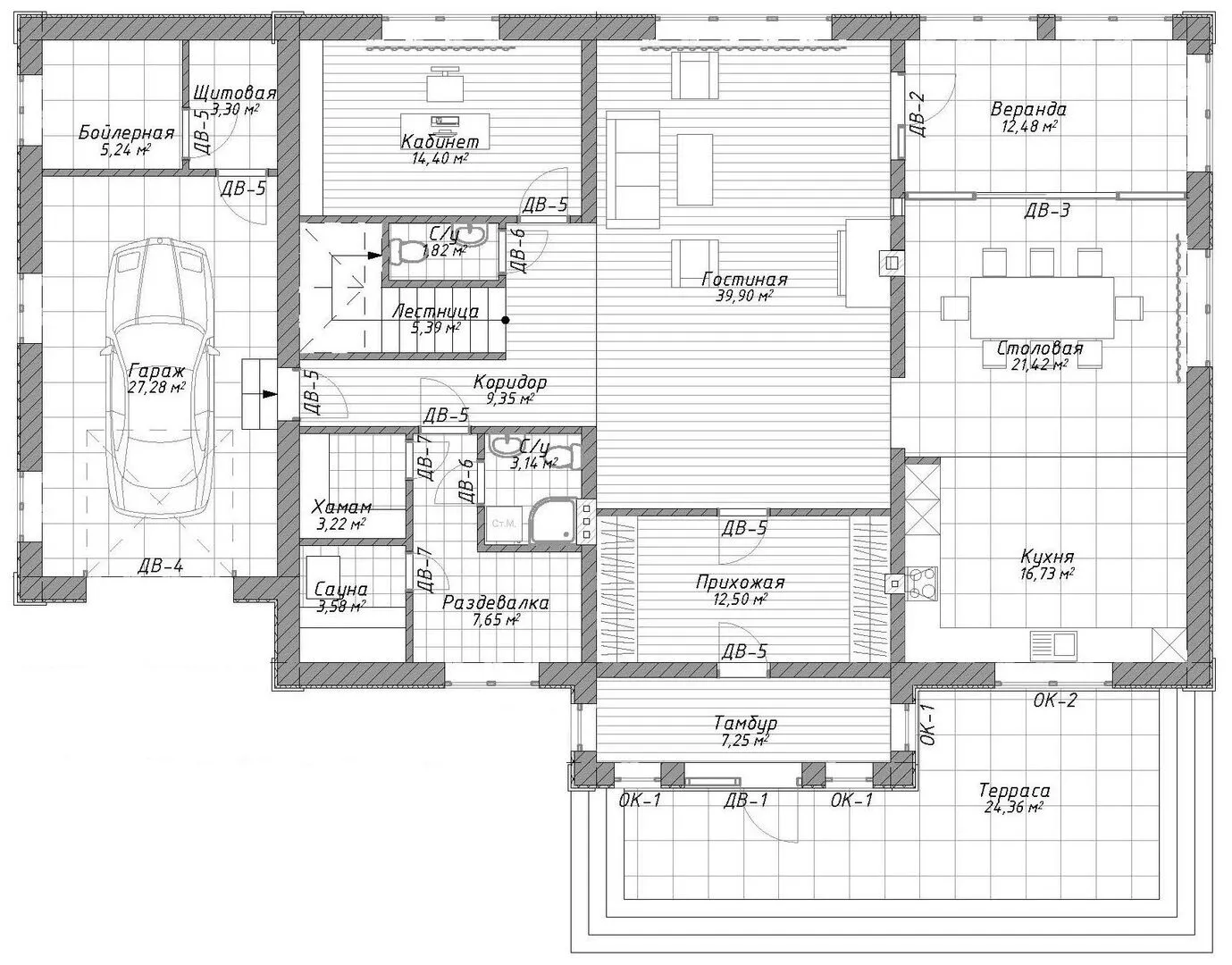 Заказать конусльтацию по:Проект двухэтажного дома с сауной в классическом стиле S-349