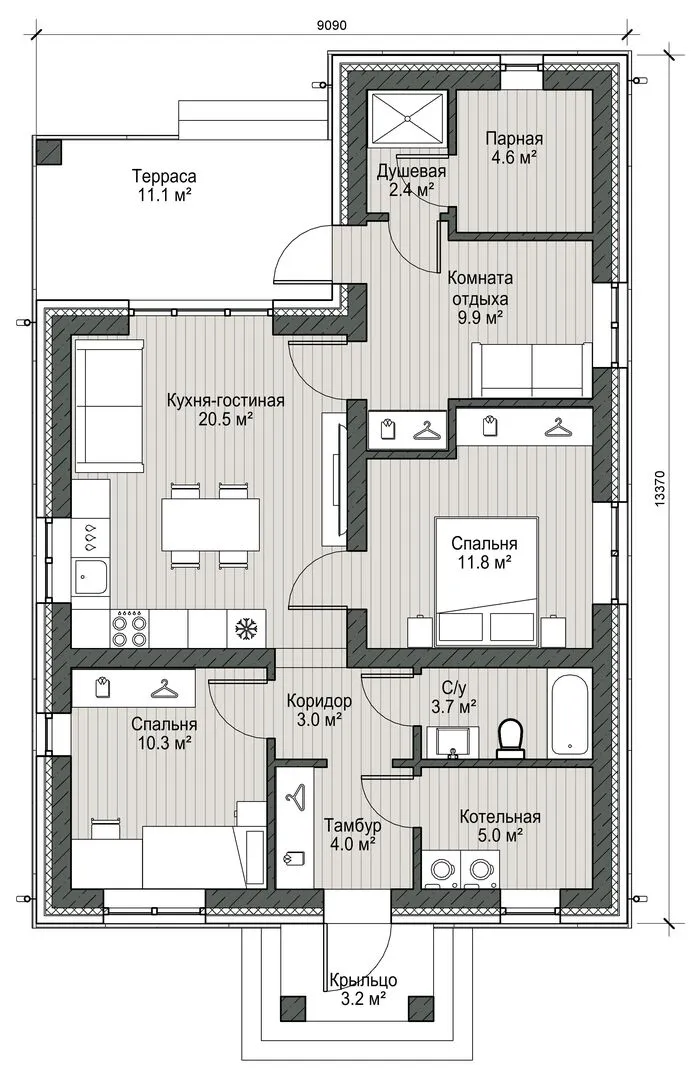 Заказать конусльтацию по:Проект одноэтажного дома «Сиэтл»