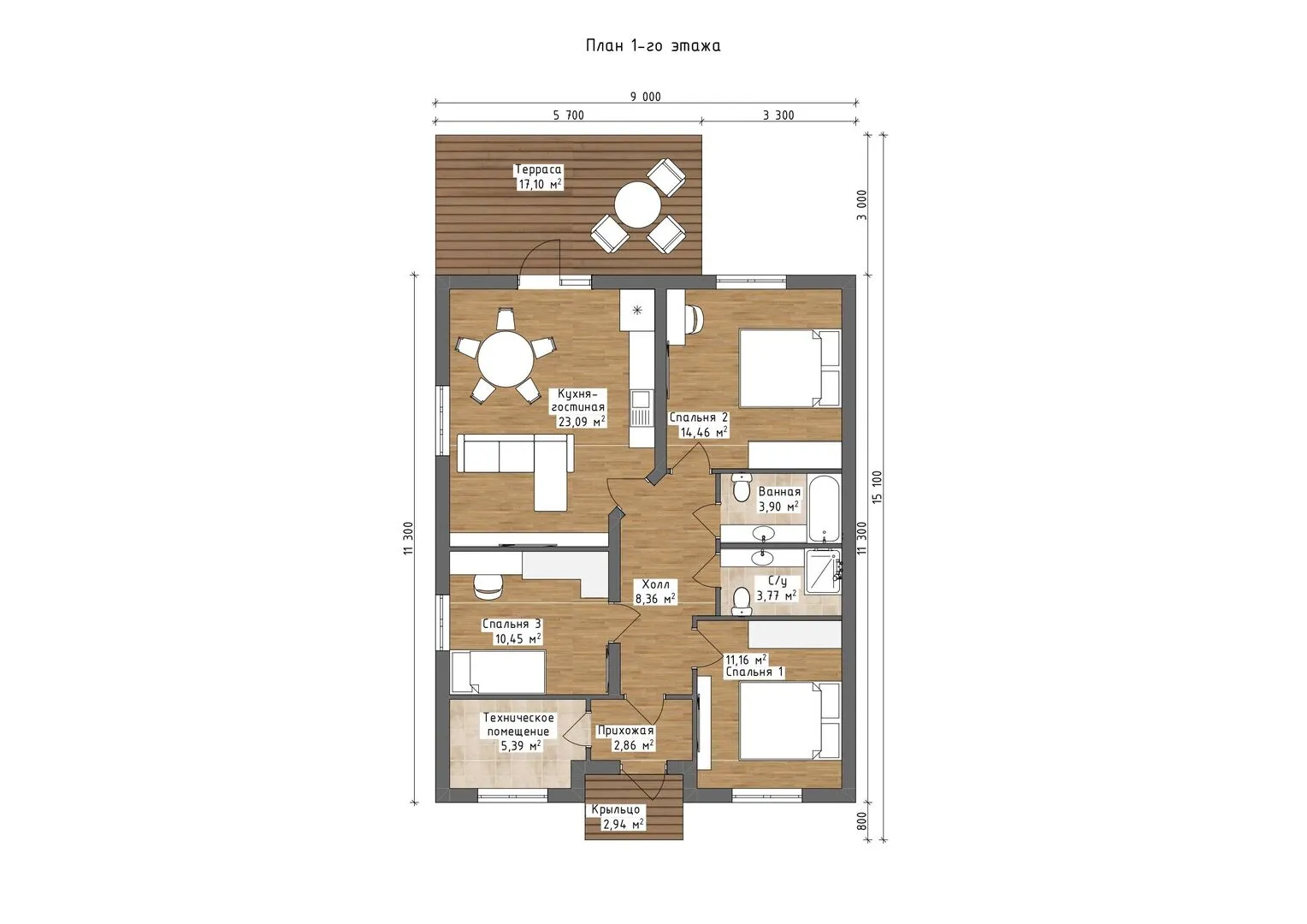 Проект одноэтажного дома «ДЕМИРА-ГЧш» 15,0х9,0