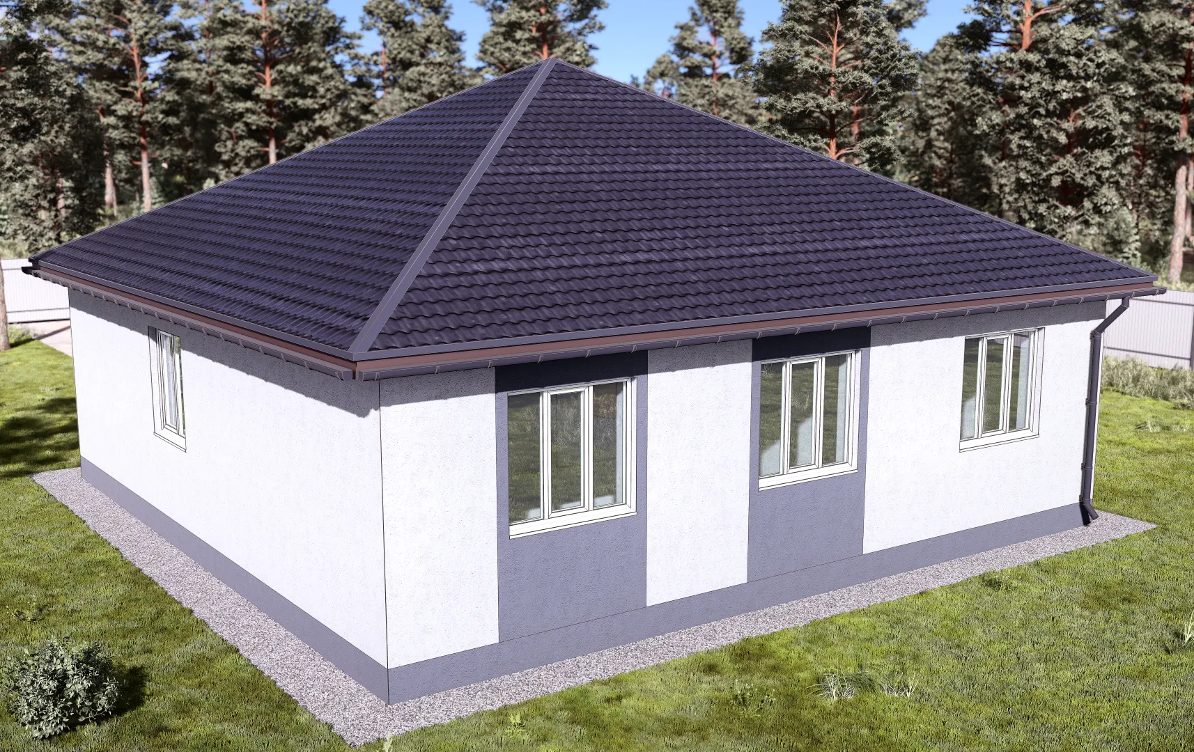 Потрясающий загородный дом проекта NHD‑175 воплощает в себе слияние европейской классики и современной практичности. Один надземный этаж и просторный чердачный кабинет позволяют легко организовать зоны отдыха и работы, а тщательно продуманные планировки создают атмосферу тепла и уюта в любое время года. Внешняя отделка газобетонными блоками обеспечивает надёжную тепло- и звукоизоляцию, а четырехскатная (вальмовая) крыша вносит нотки традиционного уральского стиля, подчёркивая элегантность фасада. На открытой террасе можно наслаждаться свежим воздухом и прекрасными видами, создавая идеальное место для семейных ужинов, летних пикников или спокойного вечернего перерыва. Отсутствие балконов и веранд, а также открытая площадка перед домом подчеркнут ощущение простора и свободы, а отсутствие прицепного гаража оставляет гибкость в планировании участка. Этот дом, рассчитанный на круглогодичное проживание, станет надёжным убежищем для любой семьи, стремящейся к гармонии с природой и уюту домашнего очага.