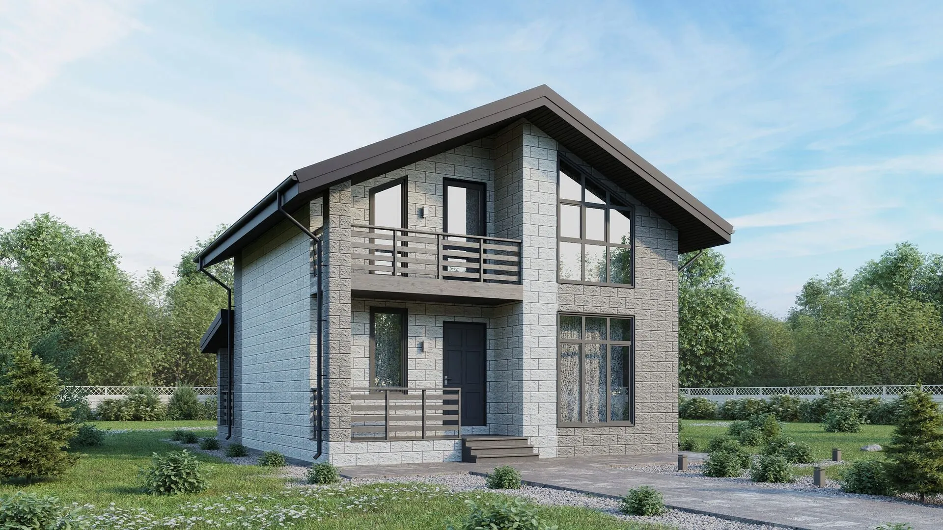 Прекрасная домика ПС‑0402 — это воплощение традиций в современном обрамлении. Он имеет два удобных надземных этажа, на которые удобно разместить семейные комнаты, а просторный чердак превращается в уютный уголок для хранения или творческого проекта. Благодаря классическому архитектурному стилю с двойной скатной крышей, дом выглядит элегантно и тепло, как в летний день, так и в заснеженную зиму. Здесь можно наслаждаться круглогодичным проживанием, ведь все материалы и конструкции выдержали испытание временем и погодой. Величественные керамзитобетонные блоки, формирующие внешние стены, не только придают дому надёжность, но и обеспечивают отличную звуко- и теплоизоляцию. Небольшая, но уютная веранда отсутствует, однако один просторный балкон/лоджия, подойдёт для любимых растений или как место для утреннего кофе. На уровне первого этажа вы найдёте открытую террасу, куда можно выложить газон и устроить маленький сад, а также разместить уютный столик для пикника. И в то же время, отсутствие привязанных гаражей позволяет сохранить свободное пространство для манёвра и легкой мобильности. Дом ПС‑0402 — это идеальное сочетание классической эстетики, практичности и комфортного пространства, которое станет настоящим уголком уюта для своей семьи.