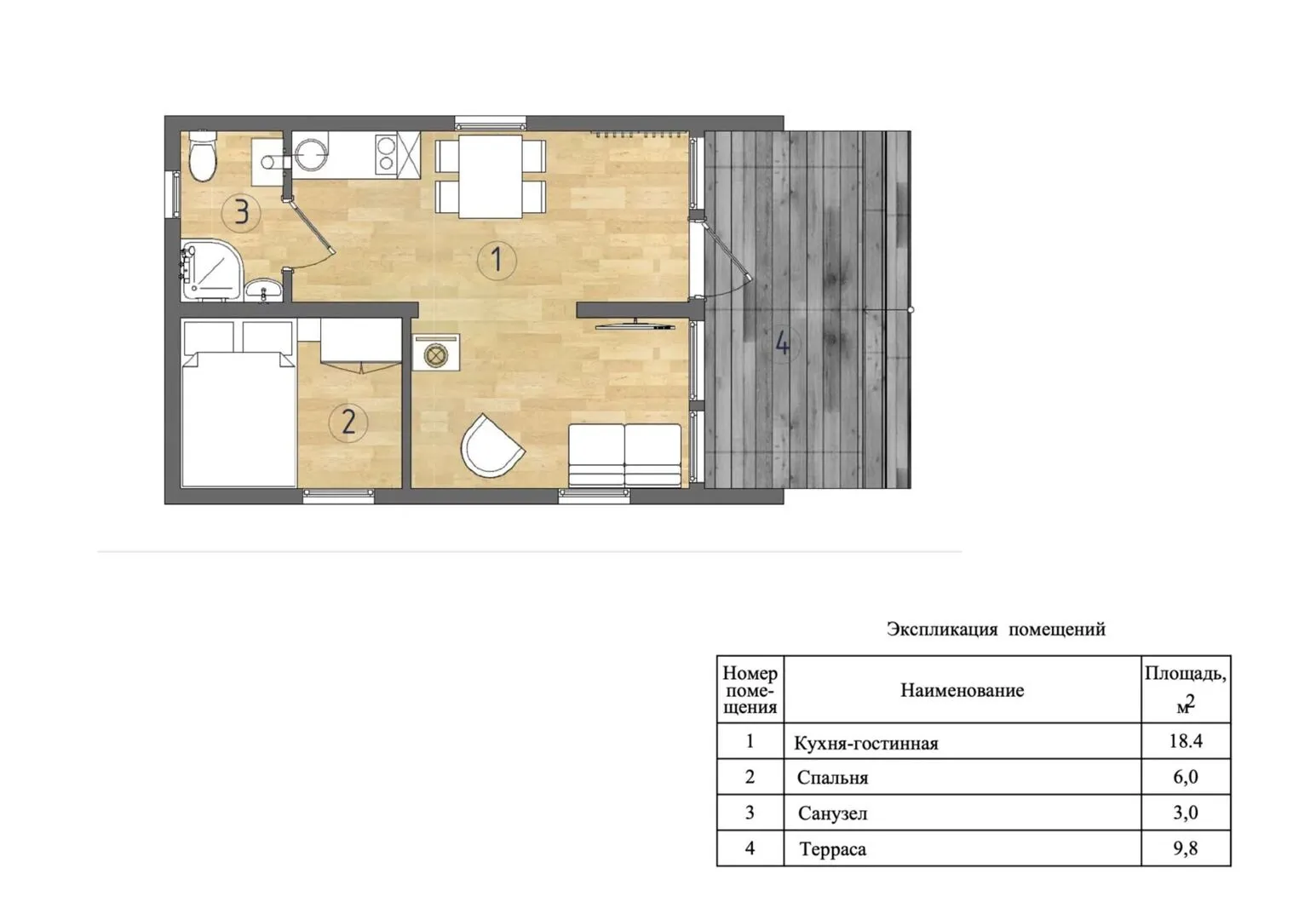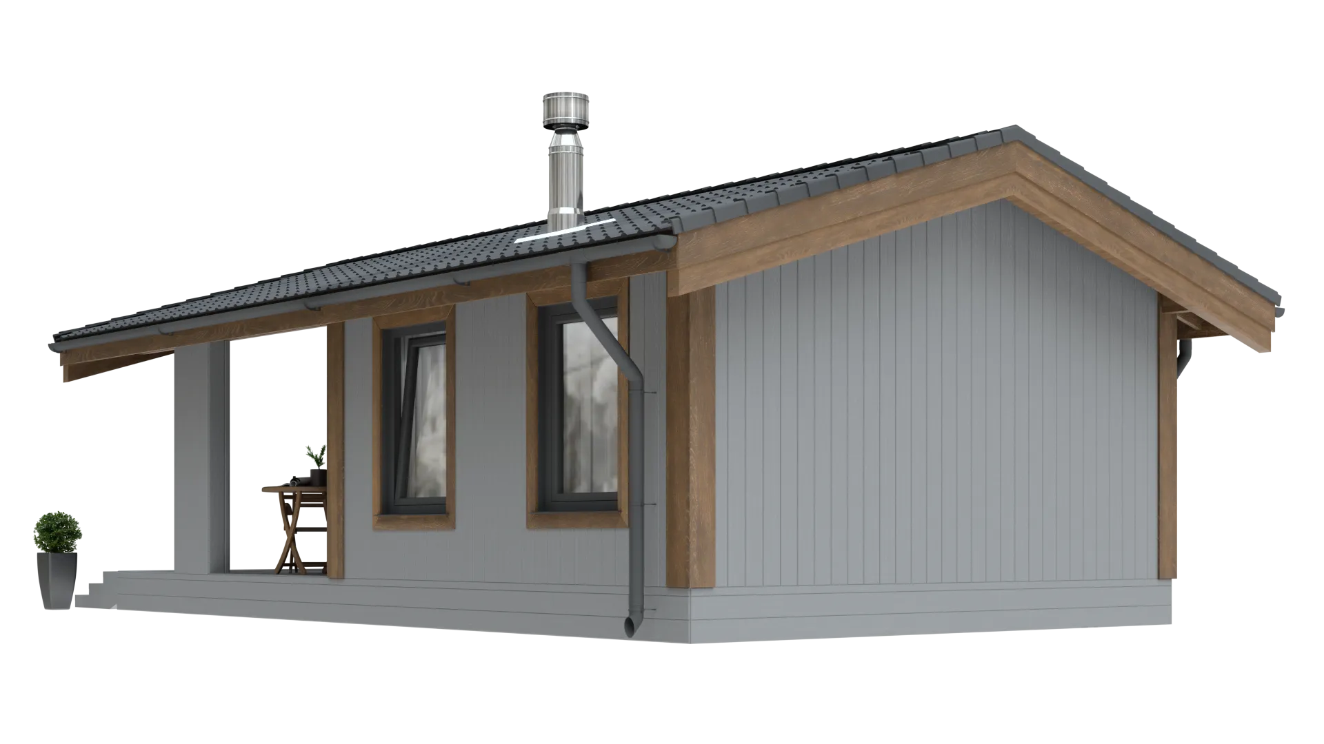 Шале 38 м² – это идеальное сочетание уютного «домашнего» очага и архитектурного шарма горных резиденций. Один надземный этаж создаёт тесный, но открытый и целостный интерьер, где каждая деталь продумана для приятного и долгоживущего комфорта. Внутри встретится просторная гостиная, открытый кухонный уголок и компактно обустроенная спальня – всё, чтобы чувствовать себя как дома, даже в самые холодные месяцы. К деревянному каркасному облику внешней стены подчёркивает двускатная крыша, придавая зданию характерный шале‑образ, а теплоизоляционные свойства древесины обеспечивают энергоэффективность и приятную микроклиматическую стабильность. Особое внимание заслуживает красивая терраса, которая превращает ваш собственный участок в маленький уголок природы. Отсюда открываются живописные виды на лес, и вы можете наслаждаться свежим воздухом без лишних усилий. Внутренняя отделка выполнена в натуральных тональностях, подчёркивающих экологичность и спокойствие. Благодаря продуманной планировке и качественным материалам, этот дом станет надёжным убежищем для тех, кто ищет гармонию с природой и при этом не готов пожертвовать уютом и удобством.