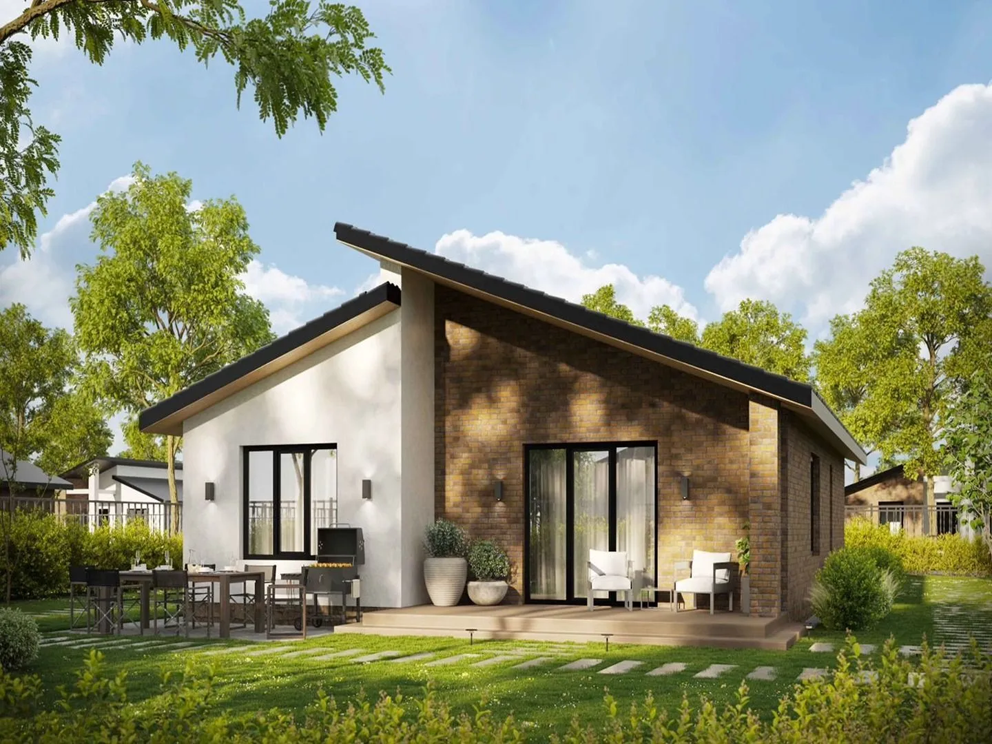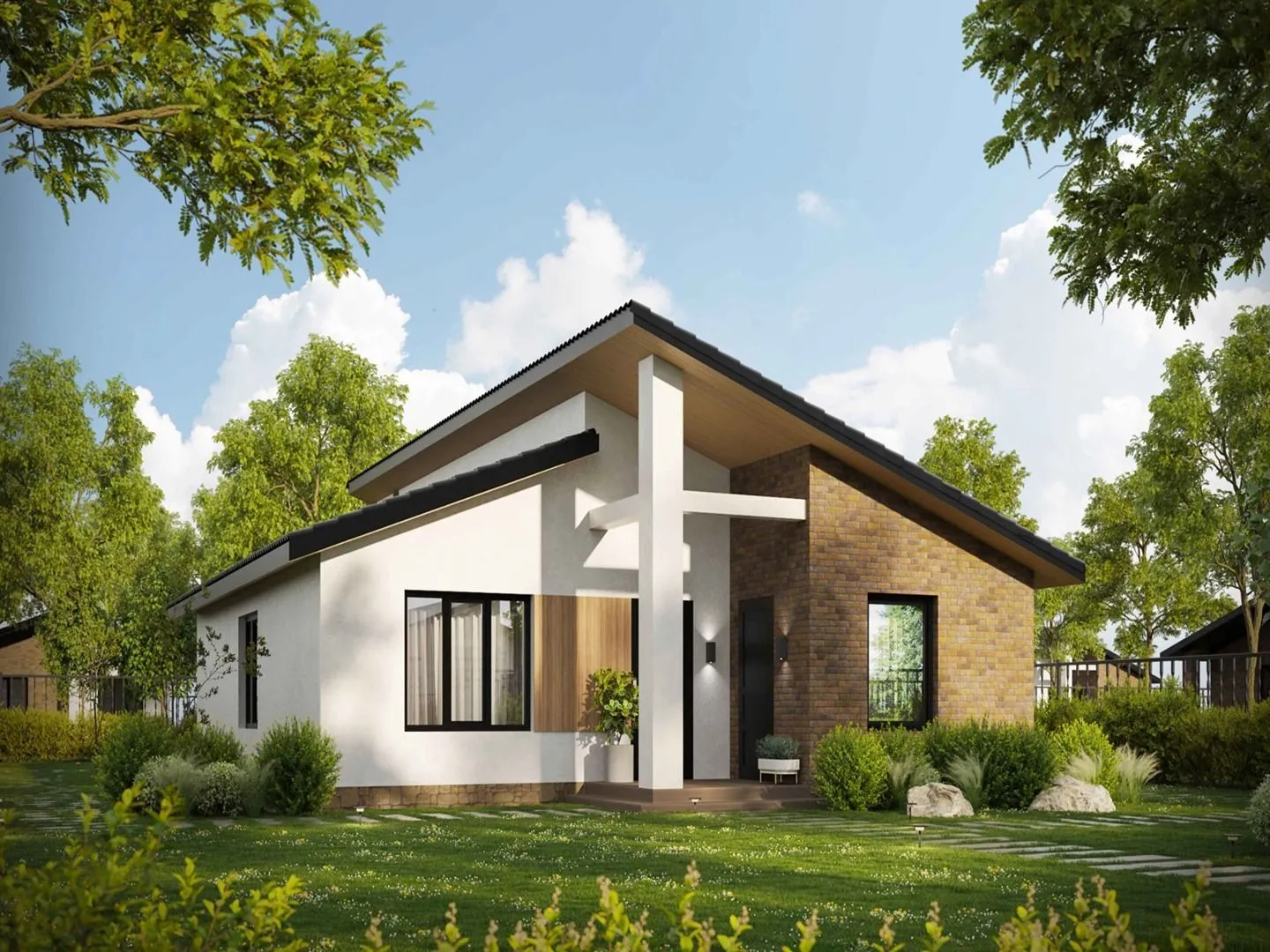 Одноэтажный дом в стиле Шале с гаражом