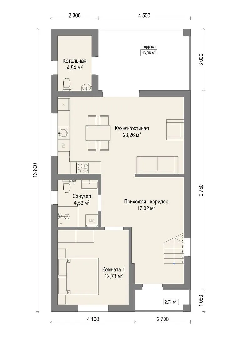 Совмещенная кухня-гостиная
