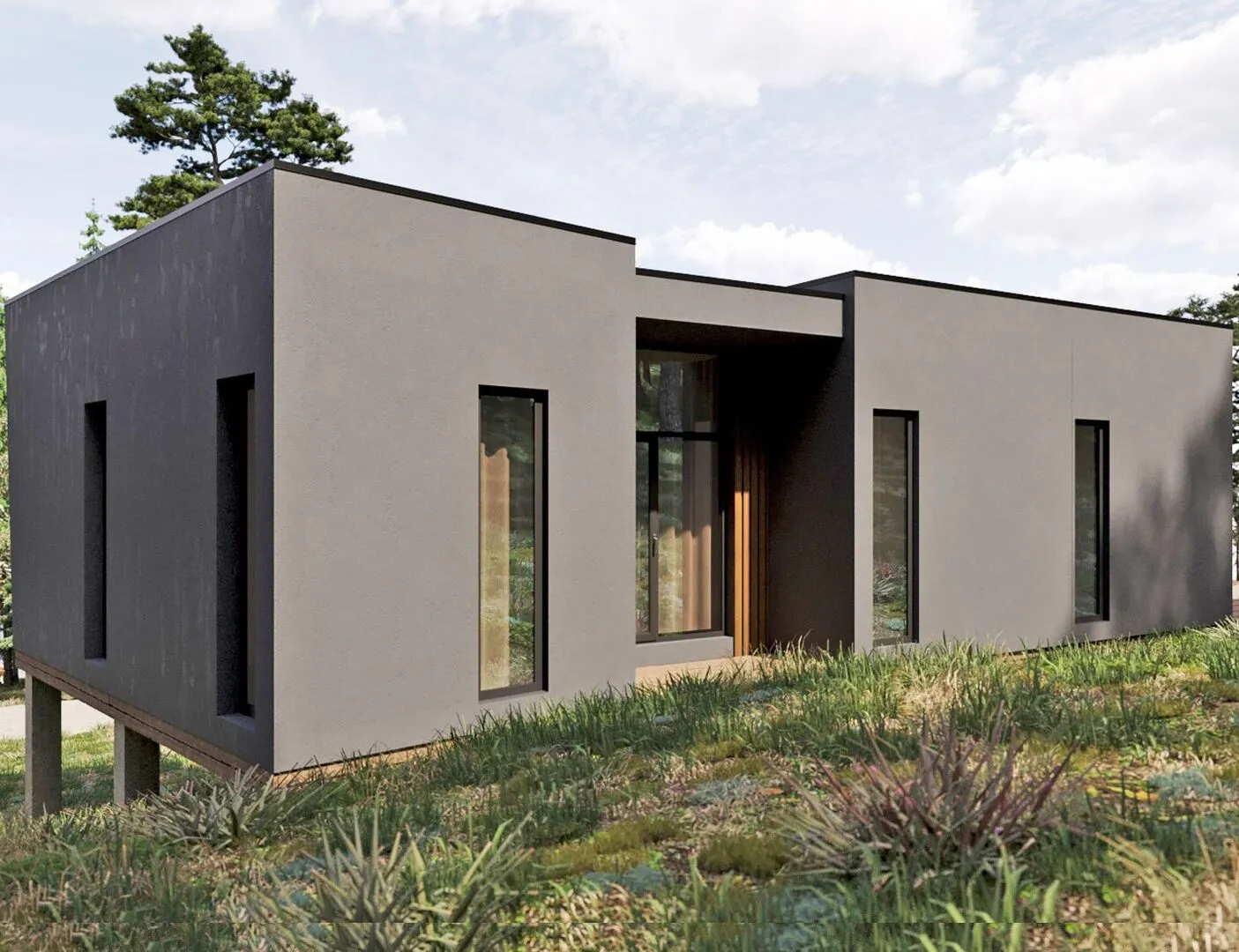 Заказать конусльтацию по:Современный дом с 1-ой спальней и кабинетом