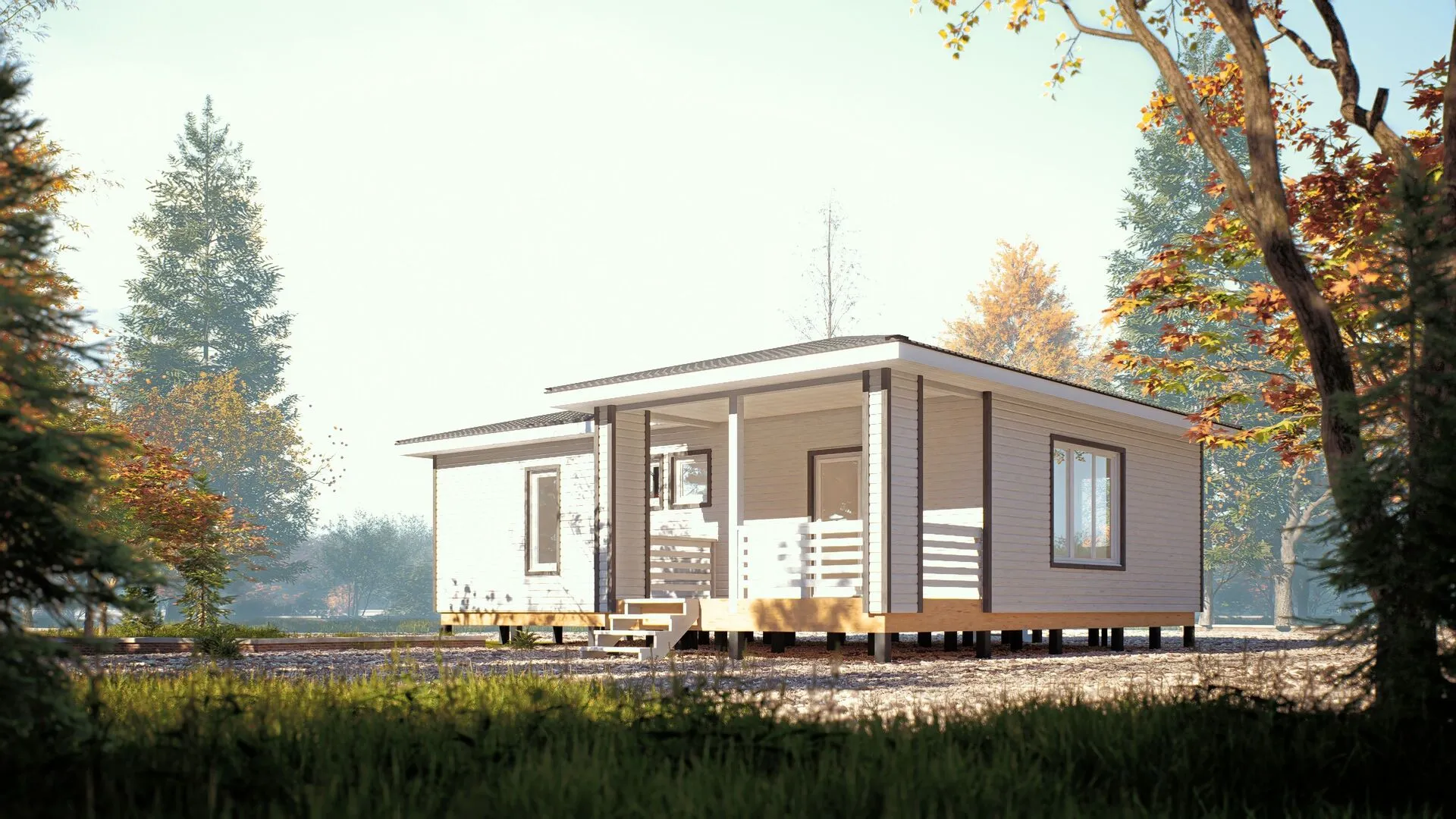 **Тайрон 92** – это ваш персональный уголок уюта, где каждая деталь продумана для комфорта и душевного тепла. Один надземный этаж, открывающий просторные светлые помещения, обеспечивает непревзойденный комфорт круглогодичного проживания. Сочетание европейского архитектурного стиля и деревянного каркаса придает дому изящную, но при этом тёплую атмосферу, словно вы обживаетесь в доме из сказки, где каждый уголок дышит природой. Дизайнерские решения созданы с учётом ваших пожеланий: просторные двери открывают непрерывный поток света, а большие окна создают ощущение объёма и простора. Двойной акцент на природные материалы и функциональность: **четырёхскатная вальмовая кровля** надежно защищает от непогоды, а **терраса** становится вашим личным оазисом, где можно расслабиться после насыщенного дня. Внутри дома простота соединяется с функциональностью – от современного планировочного решения до аккуратного отделочного покрытия. Этот дом – воплощение гармонии между эстетикой и практичностью. Подарите себе и вашей семье уют, который не зна­чет границ, и окунитесь в мир, где каждая деталь – это история, которую вы проживете вместе с близкими.