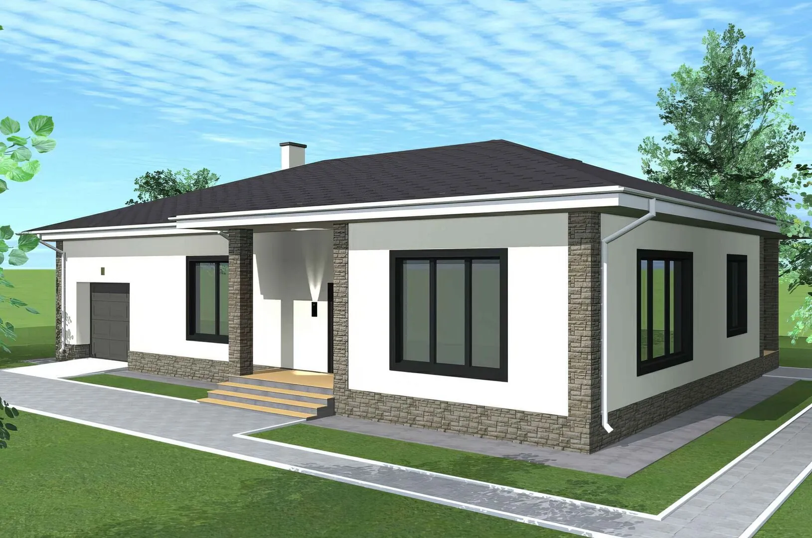 Объект — уютный семейный дом из серии VITEX 2200, представляющий собой идеальное сочетание классической эстетики и современных удобств. Он рассчитан на один надземный этаж, что обеспечивает простоту перемещения и беззвучную эксплуатацию. Строительство выполнено из газобетонных блоков – прочных, лёгких и отличных тепло- и звукоизоляционных материалов, что позволяет комфортно жить здесь круглый год без лишних затрат на отопление и кондиционирование. Классический архитектурный стиль подчеркнут плавными линиями, гармоничным фасадом и аккуратными окнами, создающими ощущение уюта и надежности. Дом оснащён отдельной крытой автостоянкой и прицепленным гаражом, что удобно для всей семьи и избавляет от проблем с поиском парковки в условиях города. Большая терраса открывает захватывающий вид на прилегающую территорию и поднимает пространство до новых высот, превращая летние вечера в незабываемые моменты. Четырехскатная (валмовая) крыша не только придаёт структуре характерный профиль, но и обеспечивает надёжную защиту от осадков и ветра. Внутри просторные помещения, созданные для отдыха и совместного времяпрепровождения: уютная гостиная с открытой кухней, тихая спальня, рабочий кабинет. Отсутствие балконов и веранд снижает риск поломок и упрощает обслуживание, а отсутствие чердака делает эксплуатацию ещё более удобной. Этот дом — воплощение удобства, эстетики и практичности, готовый стать вашим комфортным убежищем на долгие годы.