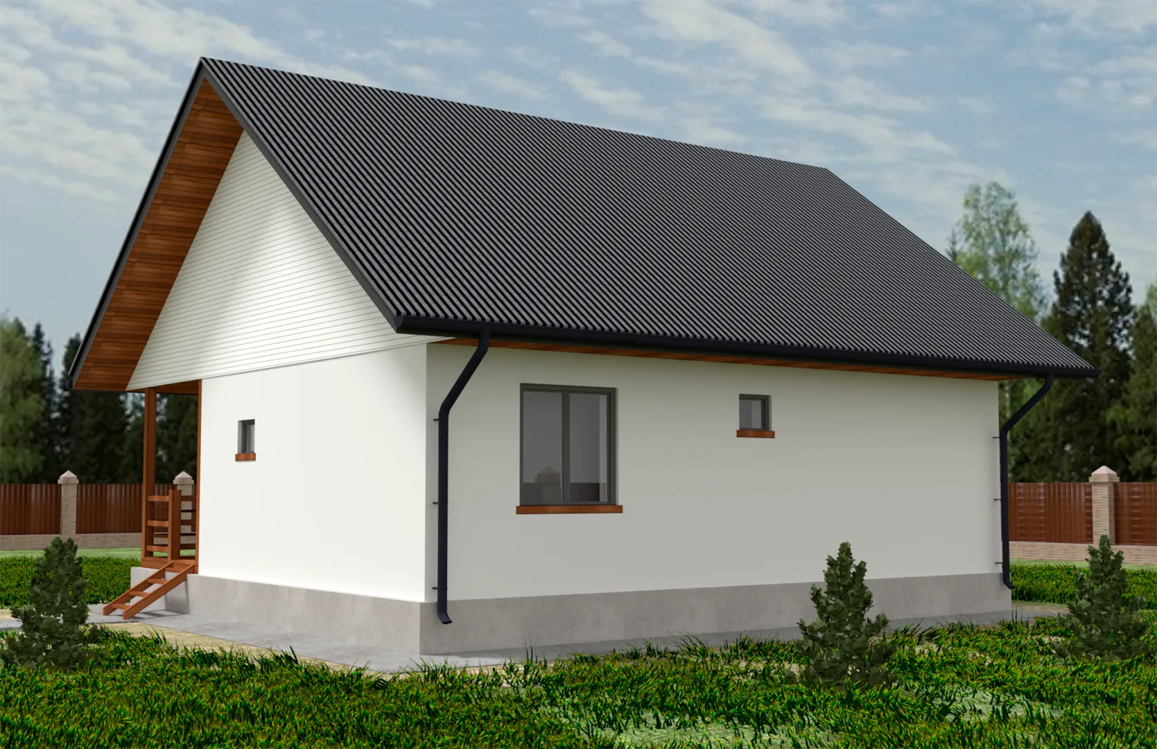**Дом мечты, где классика встречается с комфортом.** Этот уютный одноэтажный шедевр создан для круглогодичного проживания и воплощает в себе истинный дух традиционного стиля. Плавные линии фасада, изящные детали и неповторимая «классическая» атмосфера делают его идеальным выбором для тех, кто ценит гармонию и уют. Внутри вы найдёте светлые и просторные комнаты, где каждый уголок дышит теплом. **Комфорт и практичность на первом месте.** Дом построен из газобетонных блоков – превосходного материала, обеспечивающего отличную тепло- и звукоизоляцию. Вместе с комбинированной кровлей, которая надежно защищает от осадков, создаётся спокойная атмосфера весь год. Вместе с просторной террасой, где можно наслаждаться видом и проводить время с близкими, жилье становится полноценным уголком семьи. Отсутствие пристроенного гаража не лишает удобства: в окрестностях легко найти закрытое парковое место. **Приглашаем в мир простоты и стиля.** Здесь царят простота и элегантность, а каждый элемент продуман до мелочей. Если вы ищете дом, где традиция встречается с теплом и уютом, этот вариант – ваш идеальный выбор. Позвоните нам, и мы с радостью расскажем обо всех преимуществах и поможем вам стать владельцем этого уникального дома.