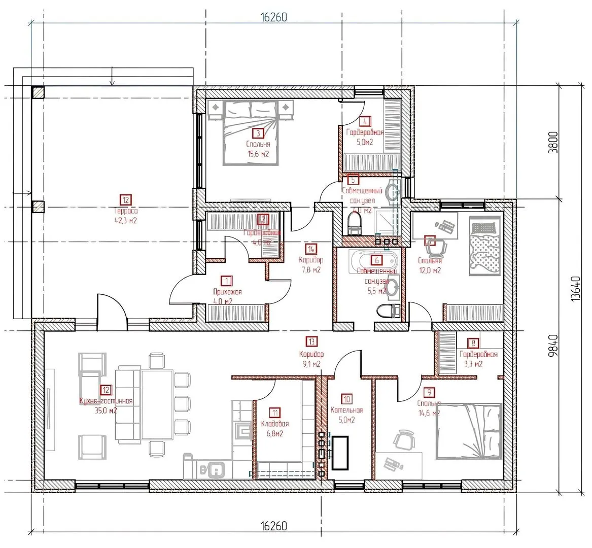 **Загородный дом 15 – уют и гармония в европейском стиле** Этот очаровательный однополярный дом олицетворяет истинное европейское ощущение уюта и баланса. Построенный из массивного кирпича, он дарит надежность и тепло даже в самые холодные дни. Содержащий круглогодичное проживание, дом сочетает в себе простоту элегантных линий классического стиля с комфортом современной жизни. Пройдя по открытой террасы, вы можете насладиться видом на живописную природу, а просторное чердачное помещение добавляет практического пространства – будь то хранение сезонных вещей или создание уютного уголка творчества. Отсутствие балконов и веранд придает дому аккуратный, лаконичный облик, а четырёхскатная крышка вальма защищает от непогоды, сохраняя атмосферу спокойствия внутри. Здесь нет прикрепленного гаража, зато каждый день начинается с чистоты открытой площадки, где можно оставить машину или поиграть с детьми в безопасной зоне. Дом открывает двери к спокойной жизни в гармонии с природой, приглашая к каждому дню наслаждаться теплом, уютом и благородным стилем.