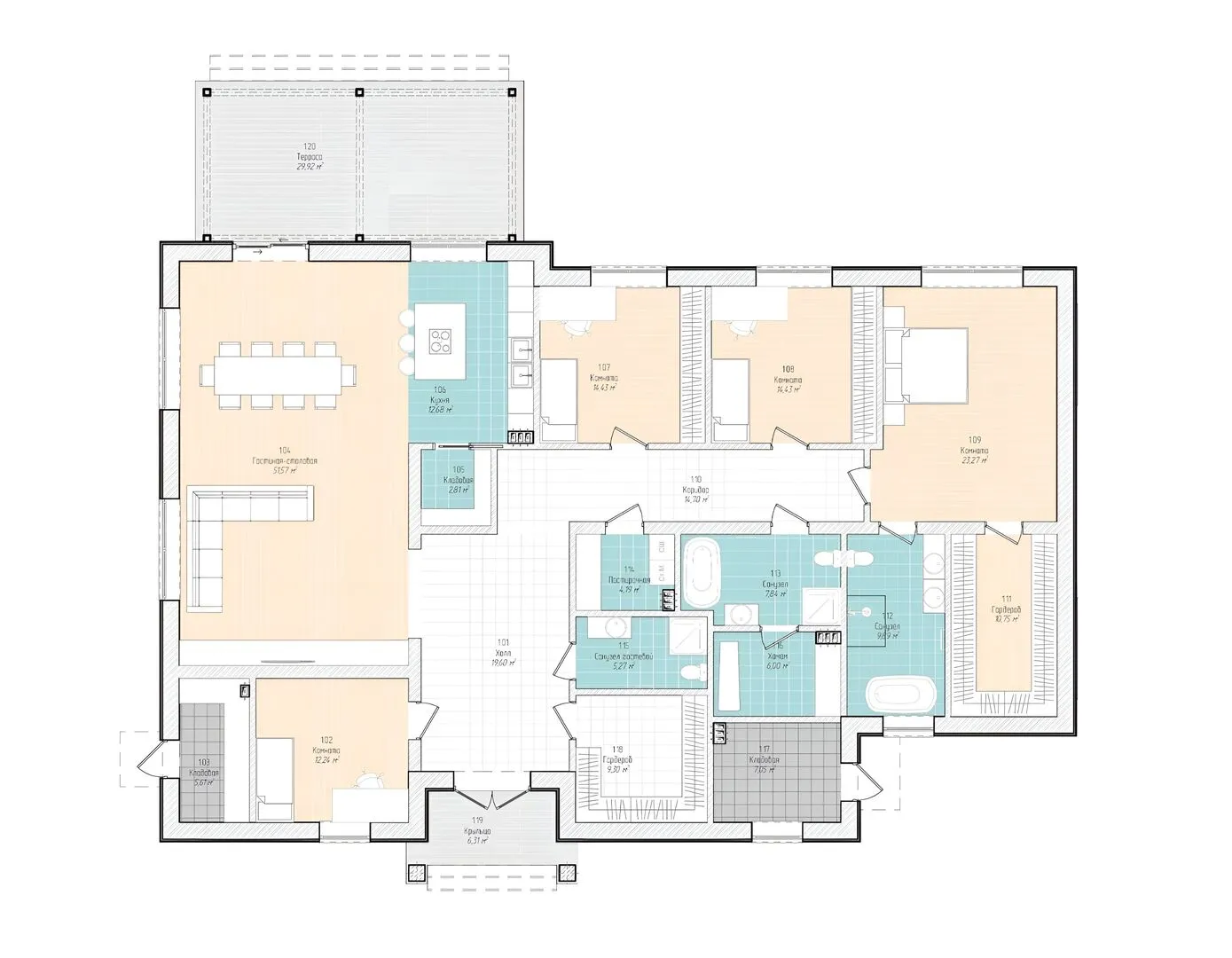Сердце этой уединённой застройки бьётся в ритме природы, а архитектура дома АС‑207 в стиле минимализма подчёркивает его гармоничную связь с природой и простотой современных требований. Первый этаж, просторный и светлый, создан для круглогодичного проживания: здесь каждый уголок пропитан уютом, а большие окна открывают бескрайние виды на лесные уголки и тихие водоёмы, приглашая к живому отдыху даже в самые прохладные дни года. Терраса, обрамлённая газобетонными блоками и покрытая плоской крышей, превращается в великолепный уголок для вечерних встреч и семейных обедов под открытым небом. Прозрачность и лаконичность фасада, без лишних украшений, позволяют сосредоточиться на чистоте форм и качественном исполнении: высококачественный газобетон гарантирует теплоизоляцию и долговечность, а плоская крыша добавляет дому современного, но при этом элегантного облика. Дом АС‑207 — идеальное решение для тех, кто ценит спокойствие, чистоту и современный комфорт. Здесь каждый элемент продуман до мелочей: от отсутствия лишних балконов до отсутствия пристроенного гаража, которые дают больше пространства для вашей личной идиллии и позволяют превратить каждый момент в особенный. Приглашаем вас открыть для себя новый образ жизни в гармонии с природой.