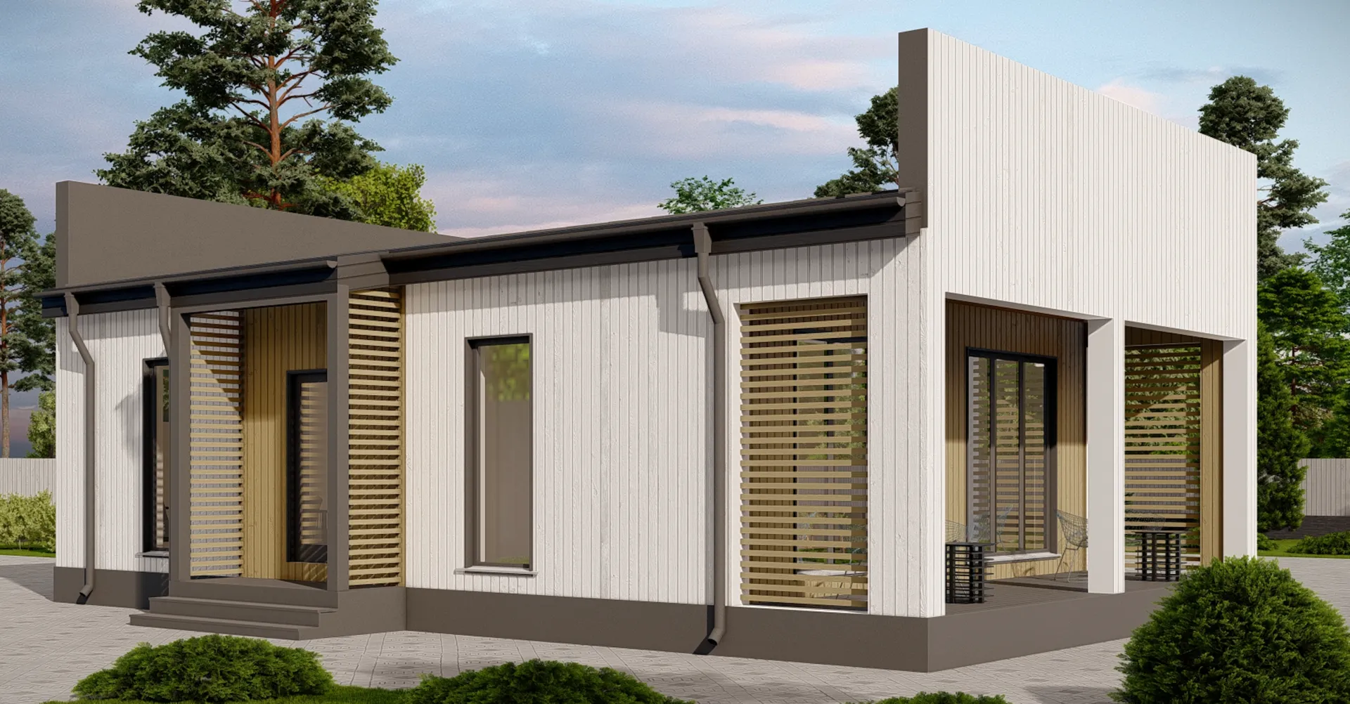 Загородный дом Хайтек‑83 – это воплощение современного комфорта, где каждый элемент продуман так, чтобы ваш отдых был не только спокойным, но и вдохновляющим. Величественная одноэтажная веранда, открывающая панорамный вид на зелёные просторы, станет вашим личным оазисом. С одной стороны – просторные, светлые комнаты с открытой планировкой, а с другой – уютный уголок под открытым небом: деревянный каркасный отлив создаёт ощущение гармонии с природой, а односкатная крыша подчёркивает динамику современного дизайна. Владение этим домом означает жить в идеальной атмосфере круглогодичной уюта. Нет ни балконов, ни веранд, которые могли бы стать отвлечением, – все пространство соединено в единый поток, где каждая деталь отвечает запросу «свобода от рутины». Хитро скроённые в «техно» архитектурном стиле детали придают дому характер, но при этом не нарушают природную эстетику: дерево, металл, стекло – все элементы сбалансированы так, чтобы обеспечить оптимальный микроклимат внутри. Для тех, кто ценит сочетание современности и простоты, Хайтек‑83 предложит всё, что нужно: тихий уголок для отдыха и вдохновения, качественное строительство и удобство за счёт просторной террасы, где можно наслаждаться закатами или рассматривать звезды. Дом полностью готов к жизни в любой сезон, и готов стать местом, где каждый день будет полон гармонии, уюта и свежего ветра лесных покровов.