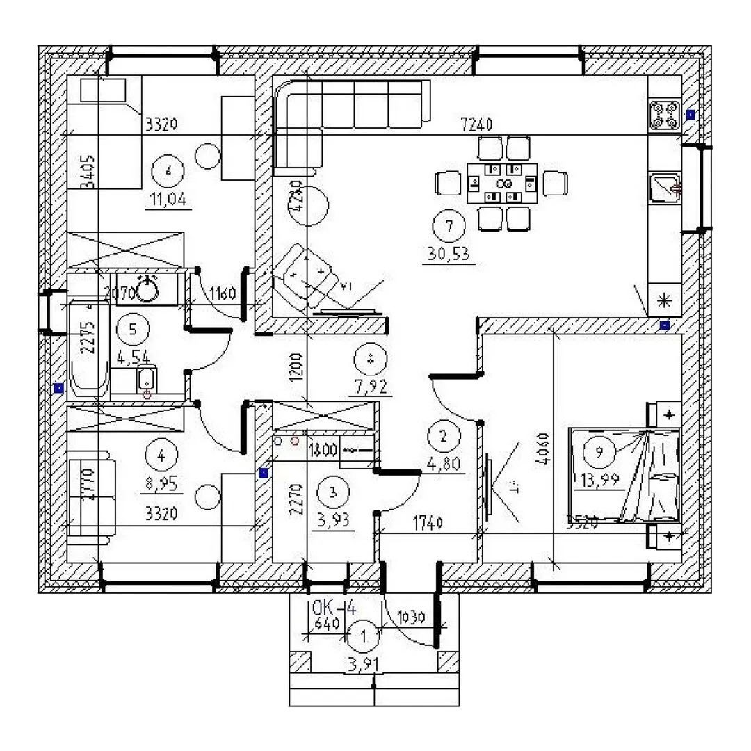Загородный дом «Омега» – это идеальное сочетание уюта и элегантности в классическом обрамлении. Одноэтажная конструкция с керамзитобетонными стенами и четырёхскатной кровлей даёт ощущение простора, но при этом сохраняет теплоту и спокойствие, подходящую для круглогодичного проживания. Внутри дом раскрывается в тонких, светлых деталях, придавая каждой комнате ощущение высокого класса без лишней загроможденности. Особый акцент в «Омеге» – это просторный чердачный уголок, который можно превратить в домашний офис, студию творчества или тихий уголок для чтения. Здесь найдётся место для маленьких чудес: уютный креативный пространственный уголок, где можно забыться и творить. Все элементы дома продуманы так, чтобы каждая деталь служила не только функциональности, но и эстетике, создавая гармонию и комфорт. Собственник может насладиться спокойствием загородной жизни без лишних забот: в доме отсутствуют навязчивые балконы и веранда, что делает интерьер более закрытым и защищённым от ветра. И хотя прицепной гараж не предусмотрен, но открытая керамическая дорожка до ближайших дорог уже говорит о практичности и простоте. «Омега» – это ваш тихий уголок, где каждый день обретает особый смысл, а стильный классический дизайн становится настоящим отражением вашего вкуса.