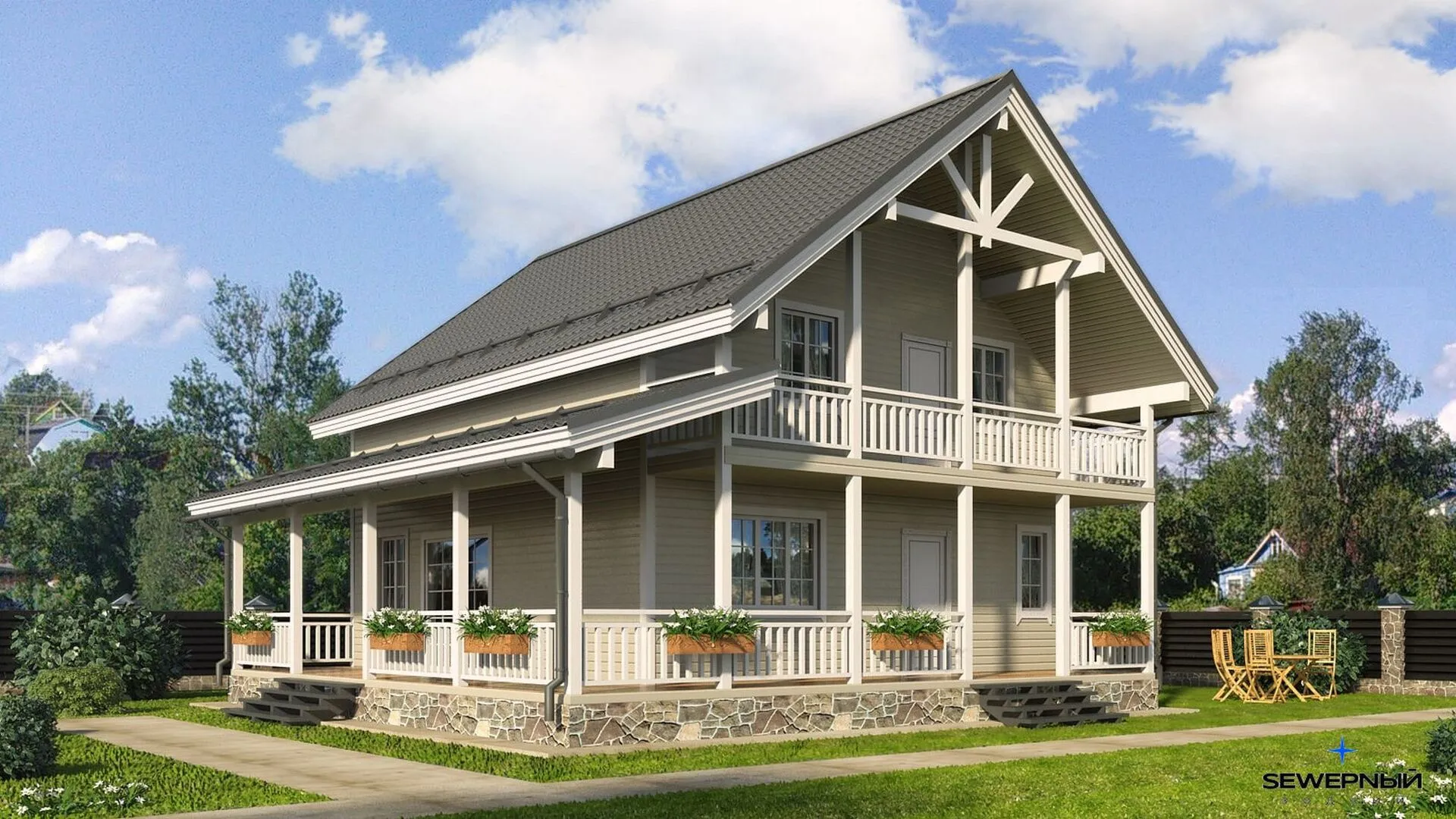 Добро пожаловать в загородный дом проекта “Павел” – оазис истинного уюта и гармонии, созданный для тех, кто ценит классику и хочет жить в полной гармонии с природой. Уже с первого взгляда на внешнюю часть вы почувствуете, как изящный деревянный каркас, обрамленный двумя скатами, создаёт ощущение тепла и надёжности. Дом рассчитан на двое надземных этажей, что обеспечивает достаточное пространство и гибкость планировок для любой семейной жизни. Круглогодичное проживание обеспечено продуманными инженерными системами и утеплением, а открытость больших проёмов и просторных световых помещений позволяет насладиться естественным светом каждый день. Стиль дома остаётся верным классической архитектуре, но при этом в нём присутствует современная функциональность. Верanda открывает бесконечные возможности для отдыха - будь то утренний кофе в тёплом парнике или вечерние посиделки под звёздами в мягком свете приглушённого освещения. Терраса по бокам, а также чердачное отделение – идеальное место для хранения сезонной брошюры или для создания уютного лаунж‑пространства. Отсутствие прицепной гаража и керамической автостоянки делает этот дом чистым и свободным, а всеобъемлющая веранда обеспечивает легкий доступ к зелёному ландшафту вокруг, где каждый уголок пропитан атмосферой спокойствия и свежести. В итоге, загородный дом “Павел” – это не просто жилище, а целая история о стиле, комфорте и природе, собранная в одном уютном пространстве. Сочетание классической эстетики, функционального дизайна и современных удобств делает его идеальным выбором для тех, кто жаждет гармоничного и спокойного проживания в кругу семьи, без лишних компромиссов.